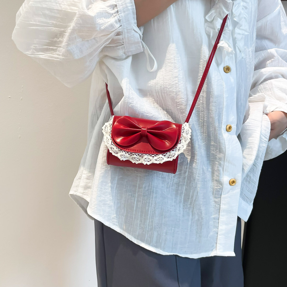新款蝴蝶结蕾丝花边2025新款包包女可爱手提配饰斜挎口红包包