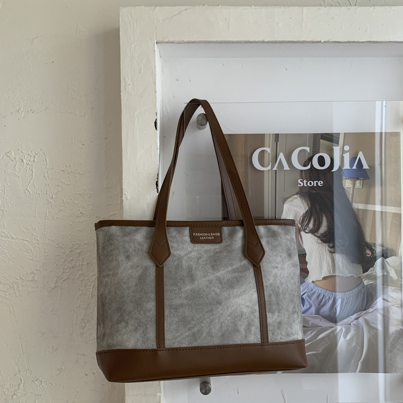 跨境外贸时尚高级感大容量托特包百搭磨砂通勤水桶包复古单肩女包