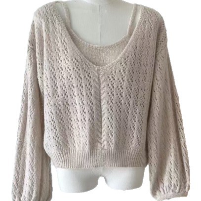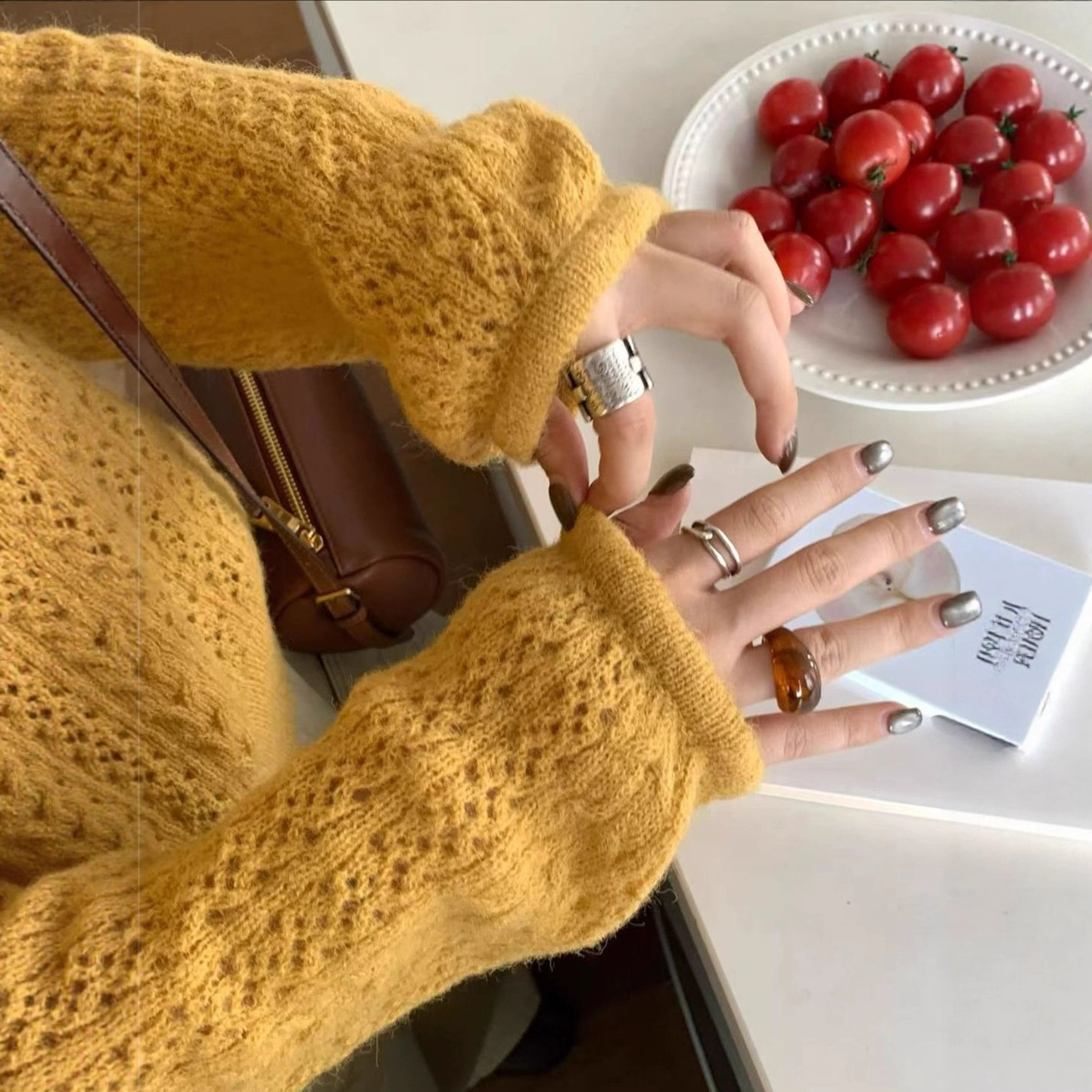 超火两件套首尔假期v领长毛马海镂空上衣女秋绞花针织罩衫两件套