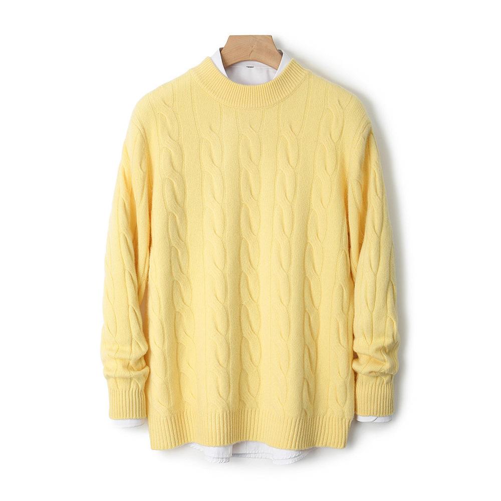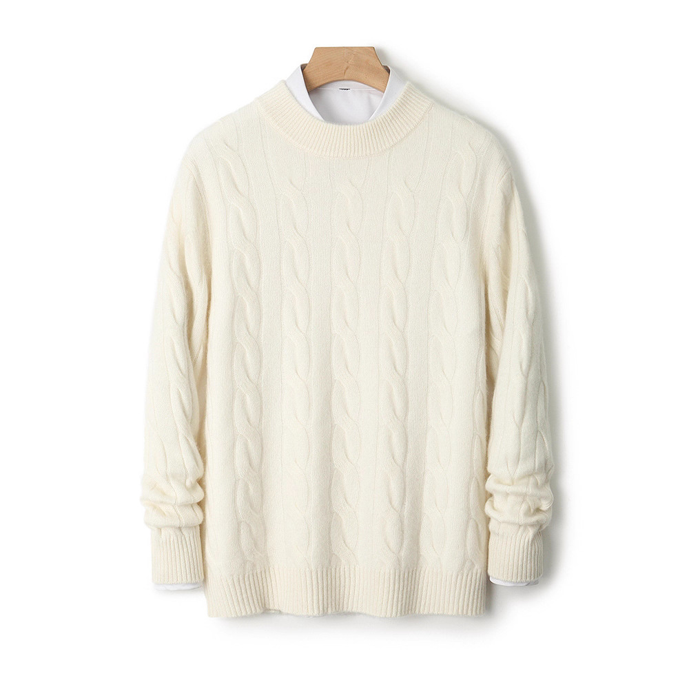 秋冬款男半高圆领100纯羊毛衫扭花七针双股加厚毛衣针织打底毛衫
