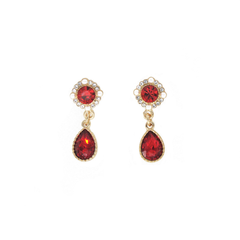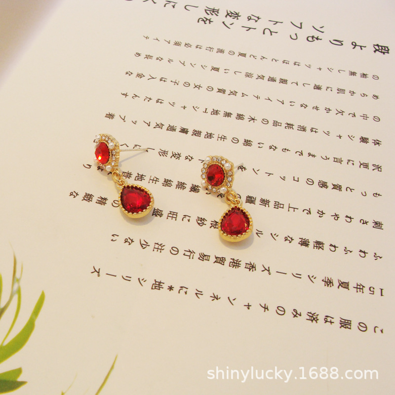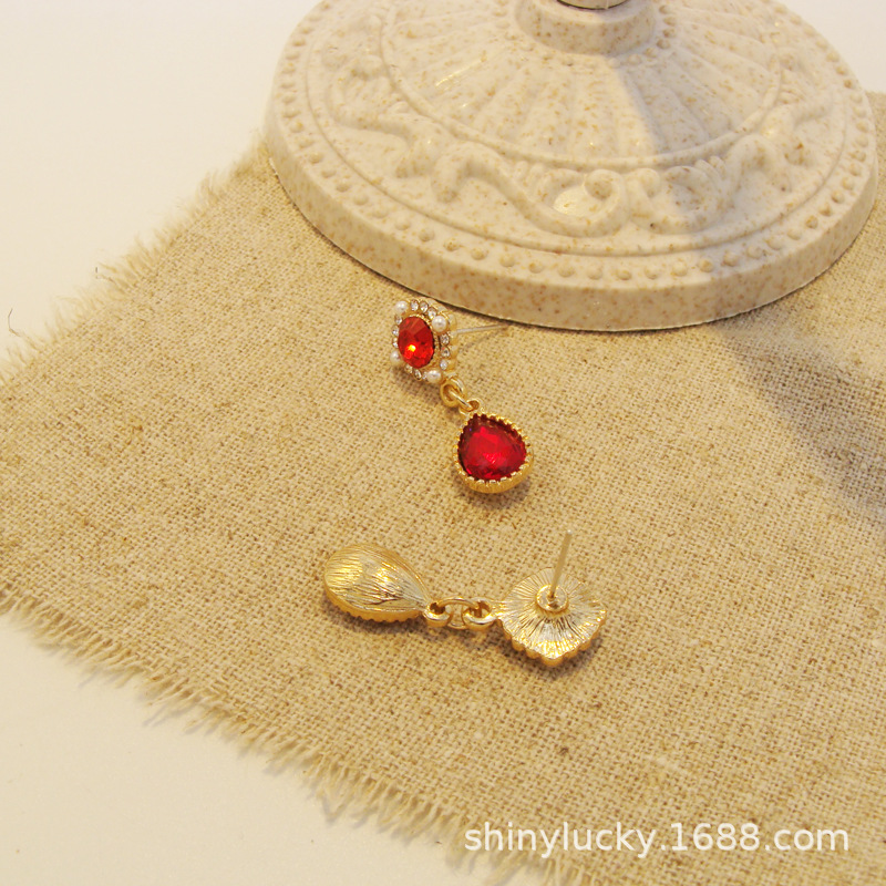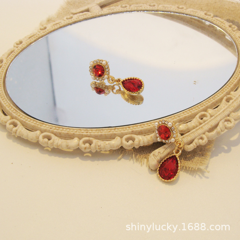 925银针韩国东大门新款巴洛克风耳钉气质百搭个性红宝石耳饰