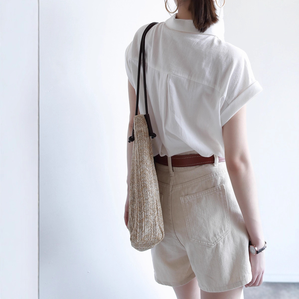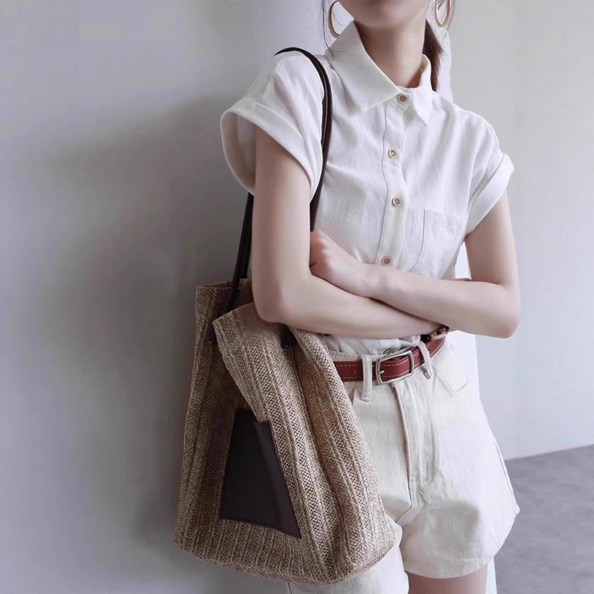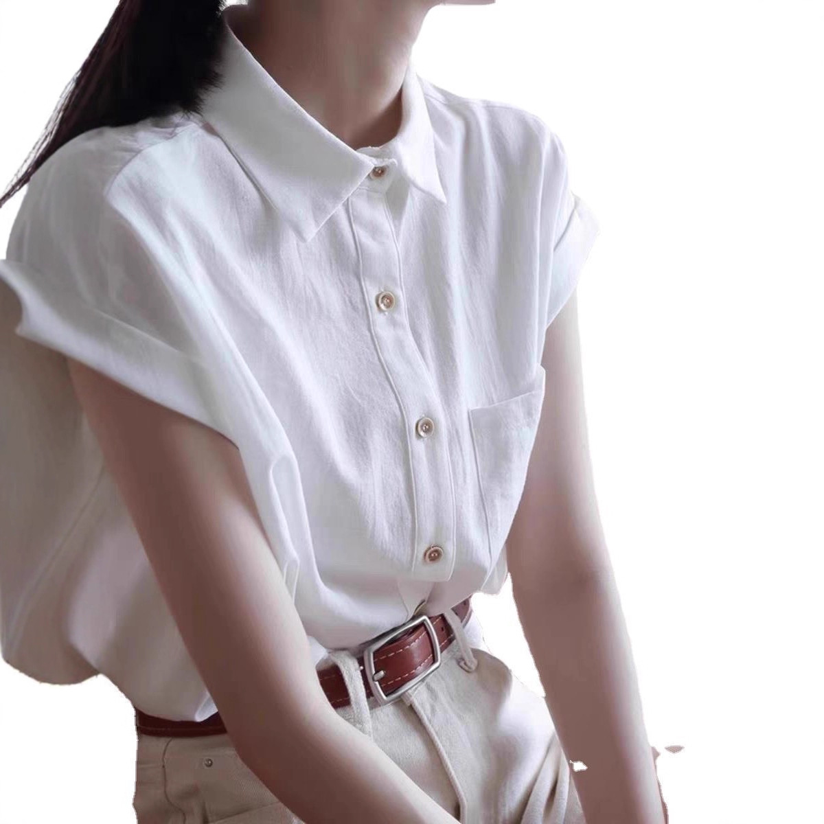 法式棉麻白色短袖衬衫女夏季2025年新款设计感短款衬衣飞飞袖上衣
