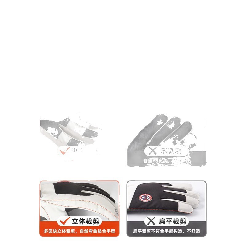 颜色 | 【五层加厚+科技锁温+滑雪推荐】 3D弯指女款-米配黑 | | 颜色 | 【加绒加厚+骑行推荐】弯指全掌-米配黑 |