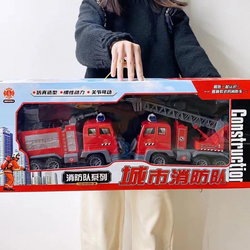 儿童工程车消防车模型惯性回力车套装男孩玩具车机构超市摆摊批发