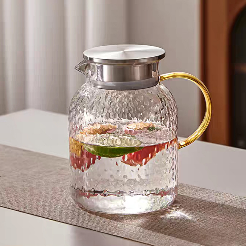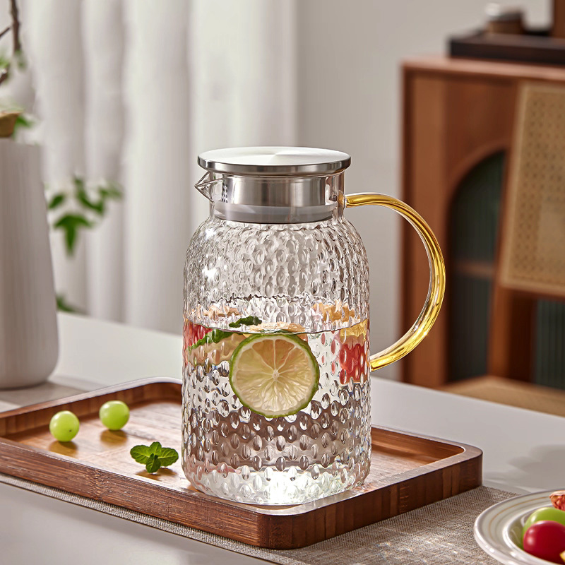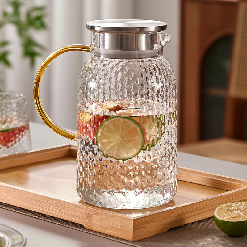 米粒冷水壶家用凉水壶大容量锤纹凉水壶玻璃耐高温果茶扎壶米粒壶