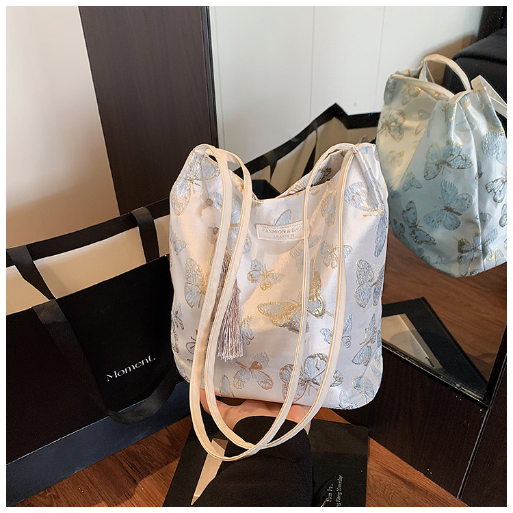 外贸新中式丝缎高级感百搭水桶包2025新款夏季女士单肩斜挎腋下包