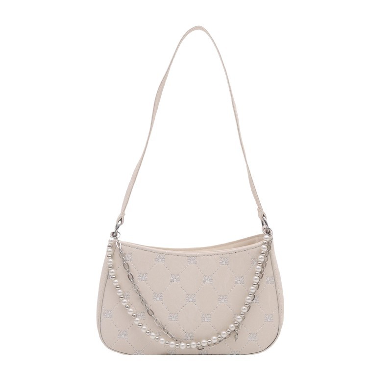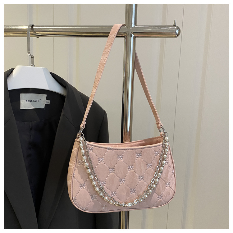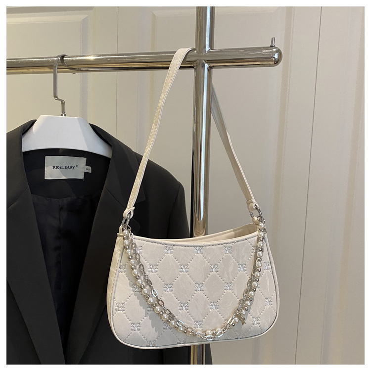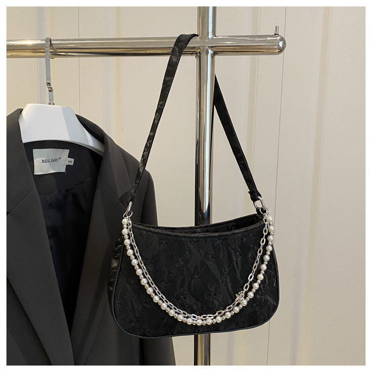 跨境2025爆款包包女bags纯欲韩系珍珠金属双链条腋下包通勤单肩包