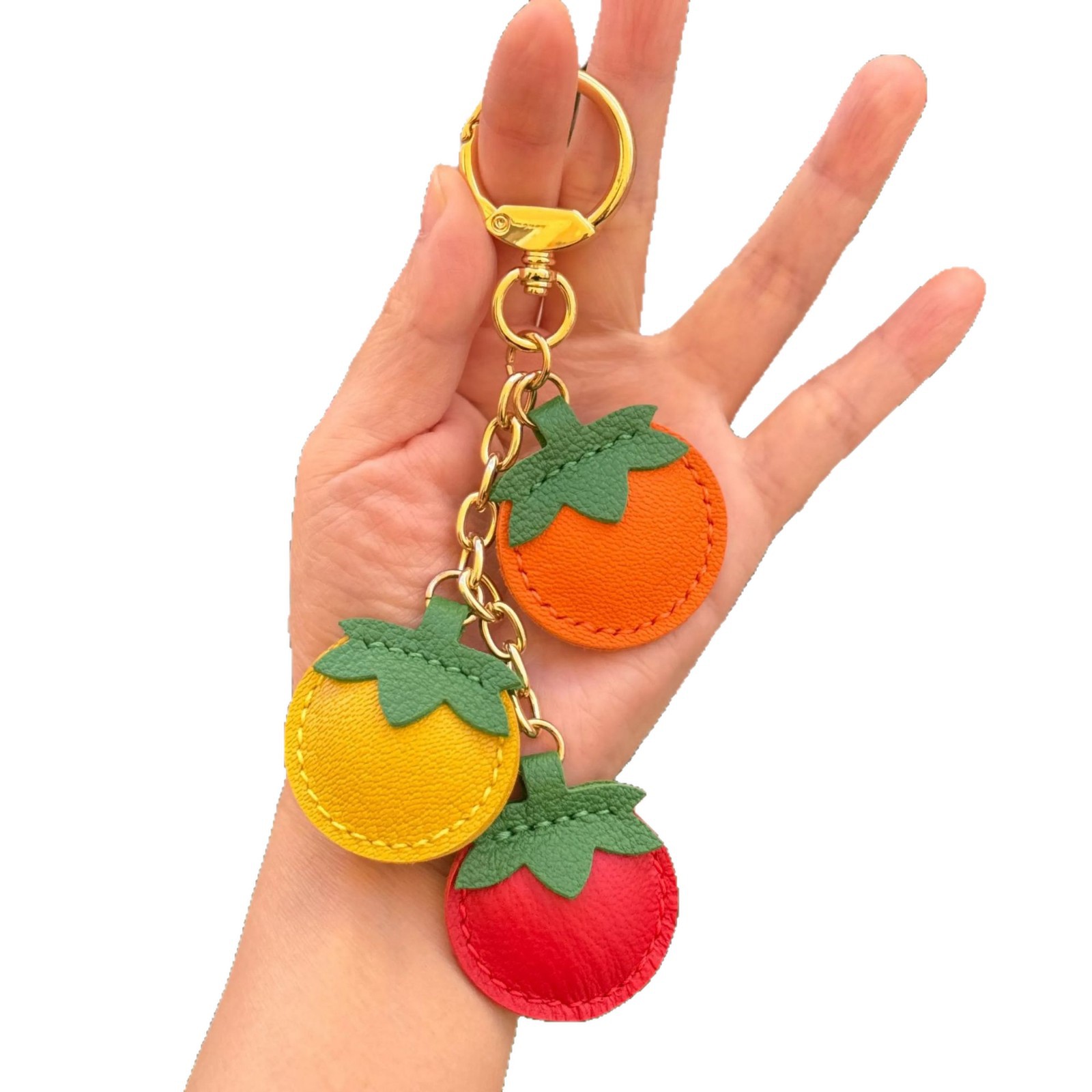创意皮革三色小番茄造型钥匙扣 水果包包挂件 个性化汽车钥匙挂件