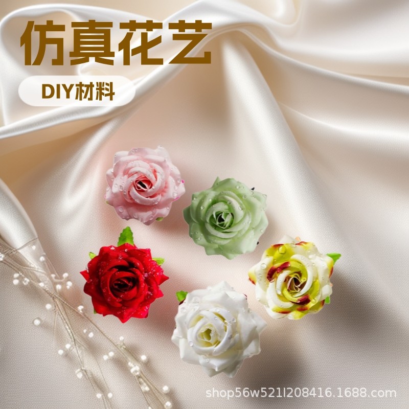 5.5厘米仿真露珠水滴仿真花朵玫瑰花DIY手腕花玫瑰花头假花礼盒配
