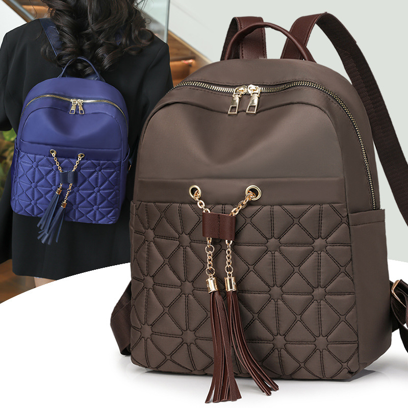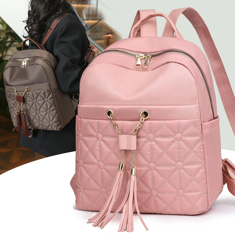 2025新款时尚旅行包菱格绣线双肩包女休闲百搭大容量女士背包