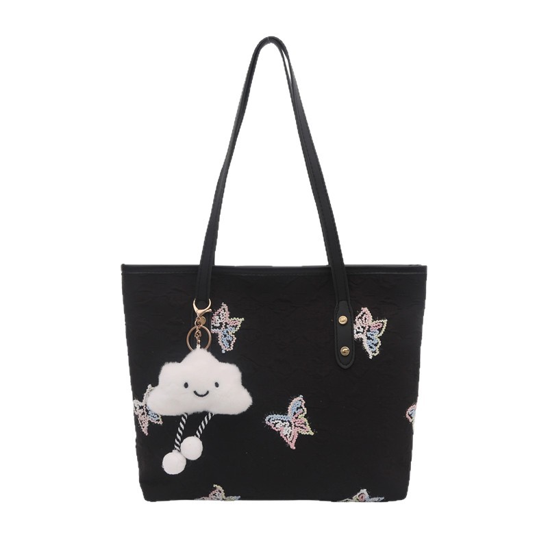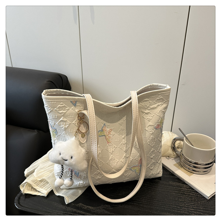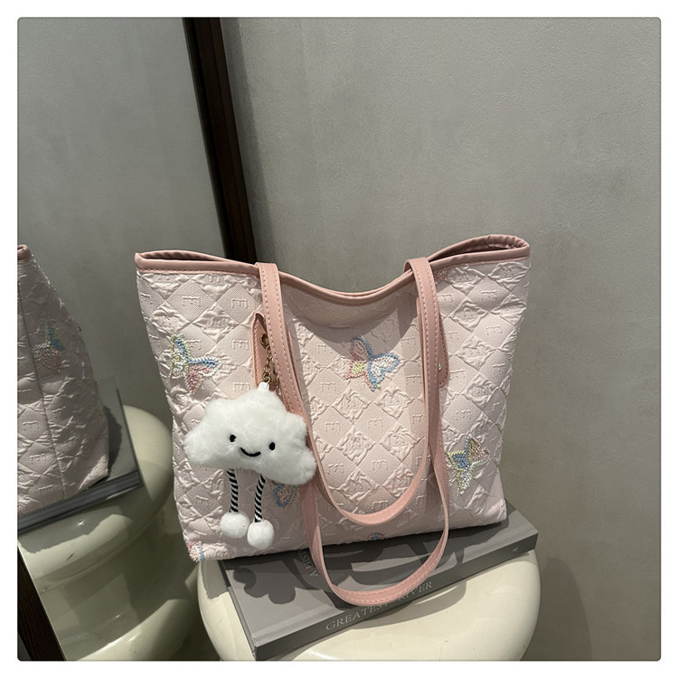 休闲通勤大容量包包女2025新款时尚大学生上课单肩条纹刺绣托特包