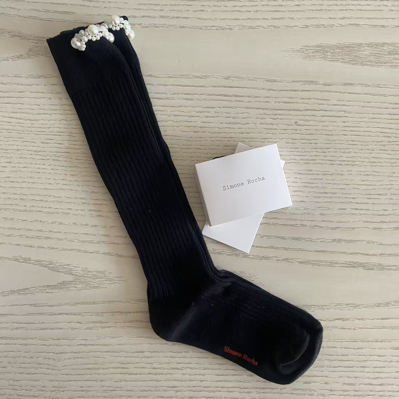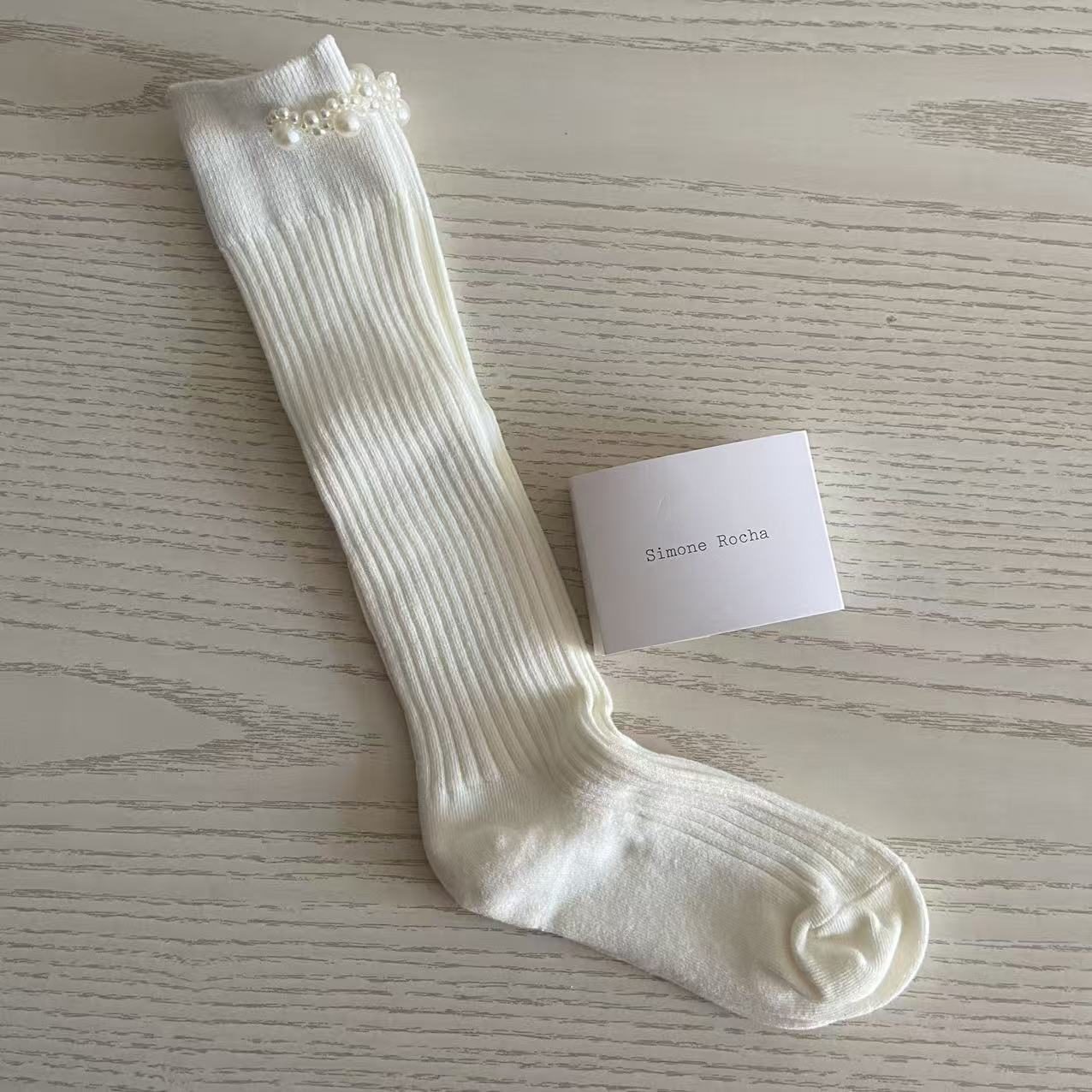 黑白色立体珍珠中筒袜青花瓷走秀款重工珠珠袜个性潮流及膝美腿袜