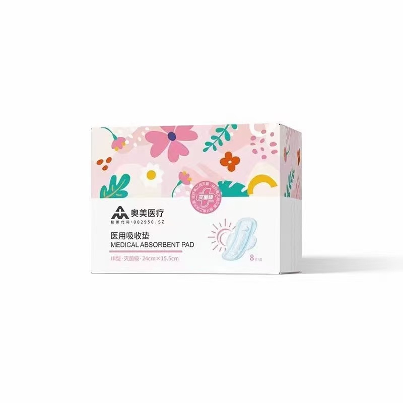 奥美医疗医用吸收垫日用夜用护垫加长型家用卫生巾型无菌型盒装