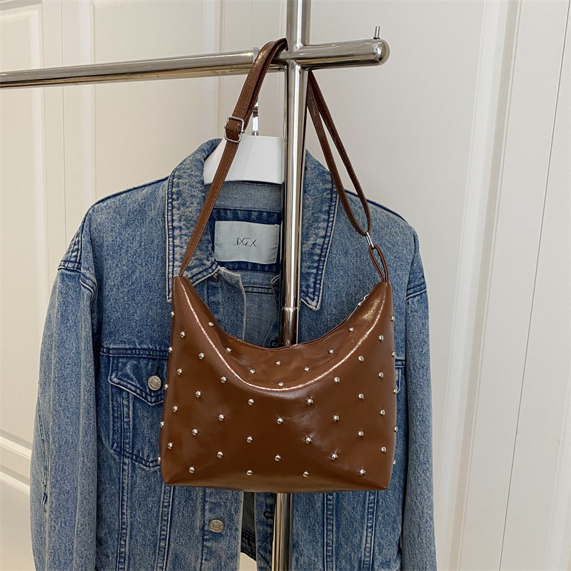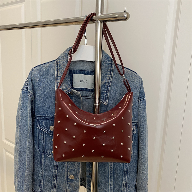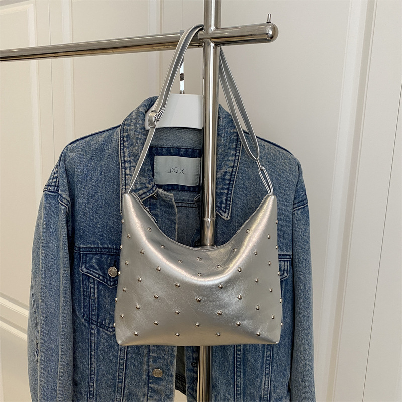 跨境大容量包包女夏季2025新款时尚小众铆钉单肩斜挎包通勤饺子包
