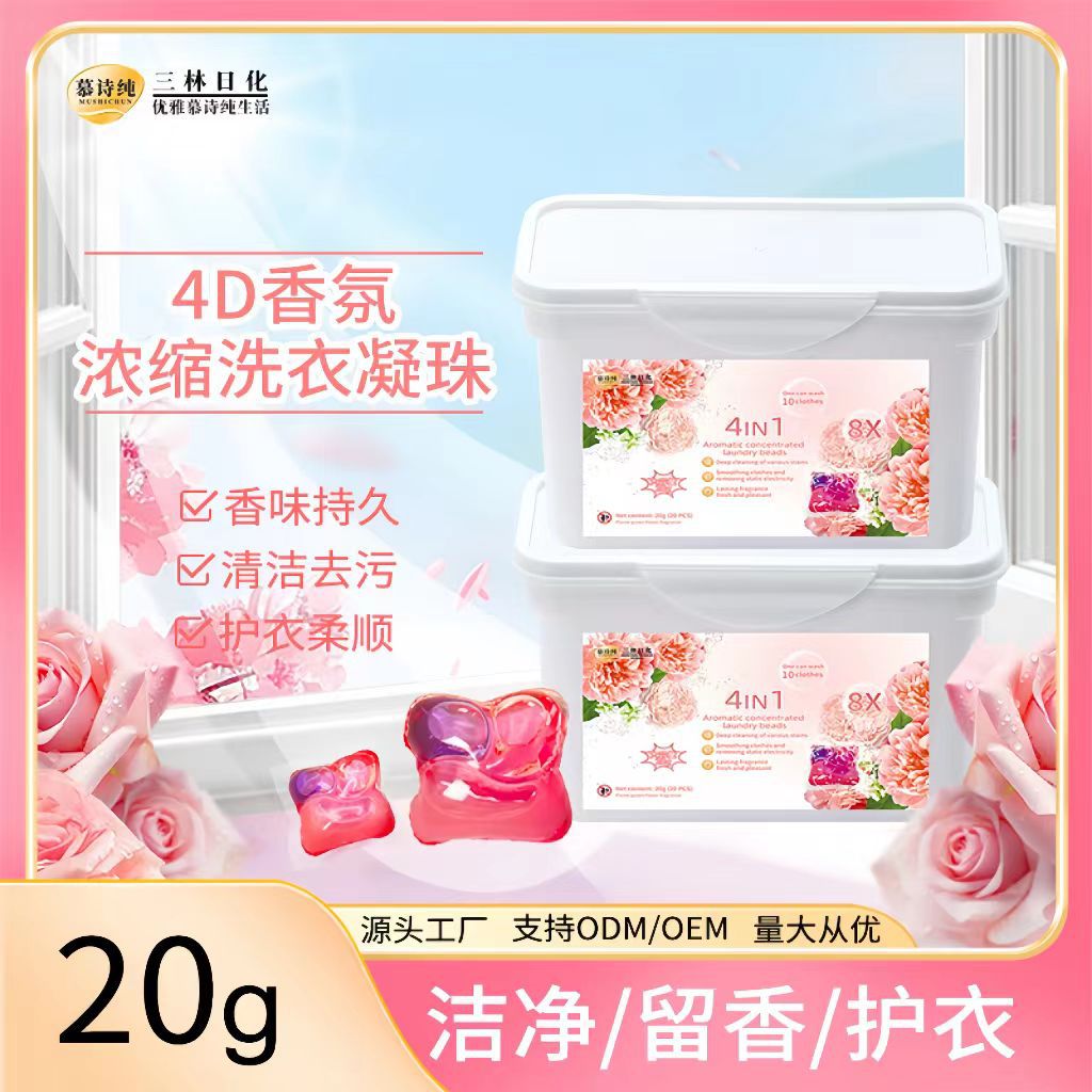 4D洗衣凝珠20颗盒装洗衣液持久留香珠20g去污柔顺洗衣球可OEM代工