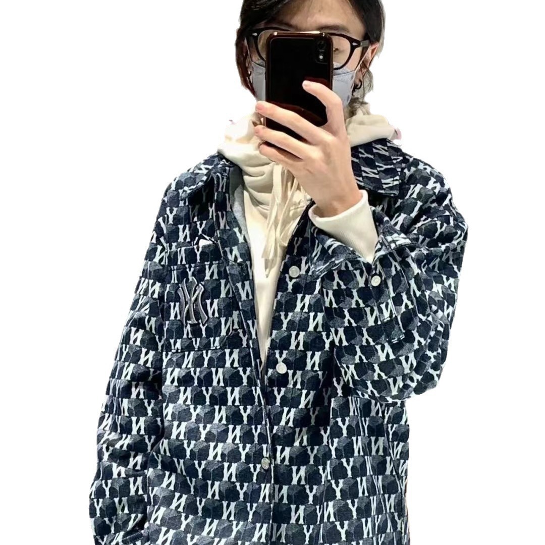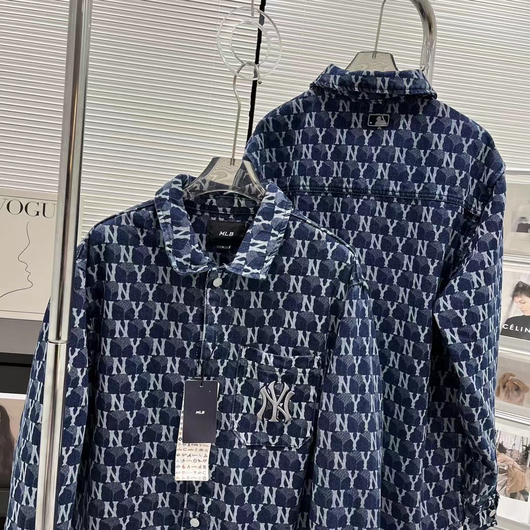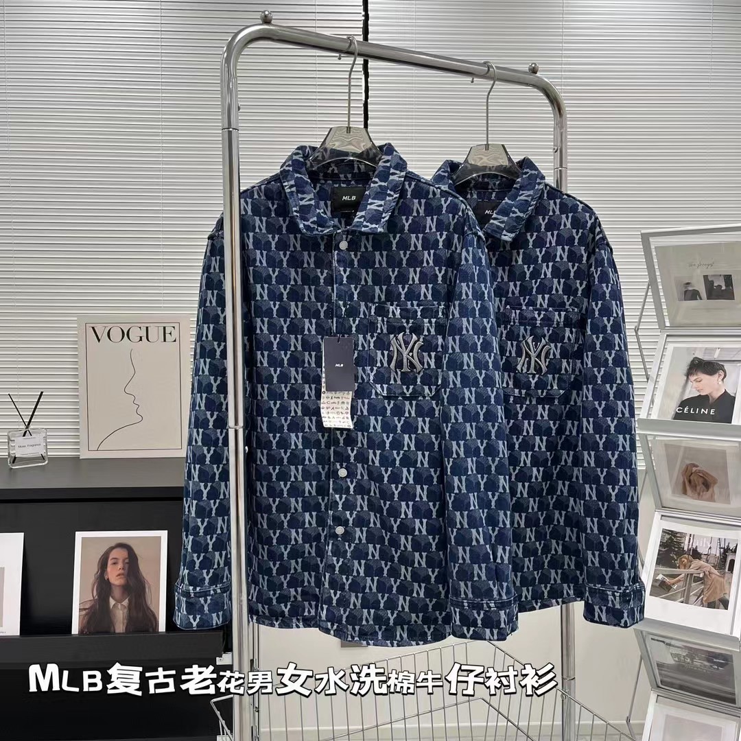 三标齐全新款 MLB 男款男女情侣款复古老花牛仔衬衫提花休闲外套