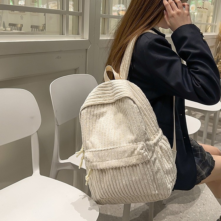 简约通勤复古风灯芯绒女包轻便耐用百搭大容量学生书包格纹双肩包