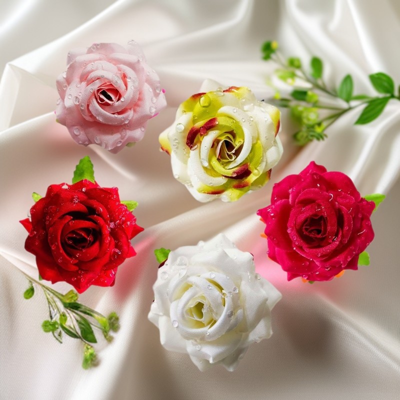 创意露珠水滴植物五角玫瑰绿植仿真花朵装饰diy露水玫瑰花头发