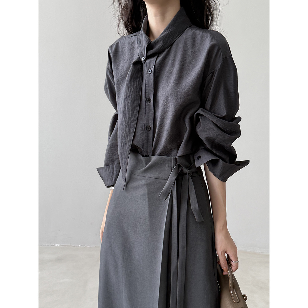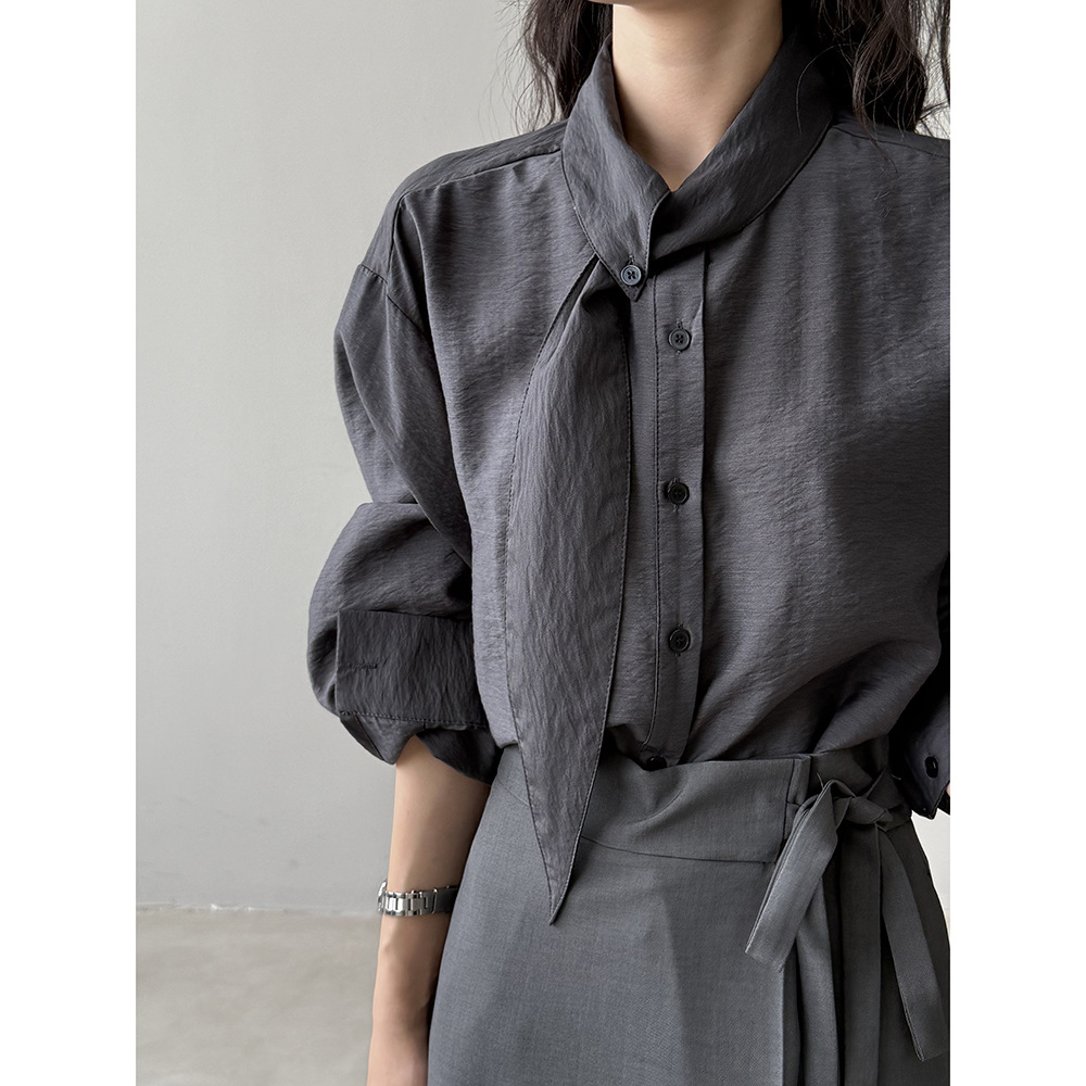 风情万种的衬衫围巾领长袖衬衫女秋季感通勤宽松显瘦小衫上衣