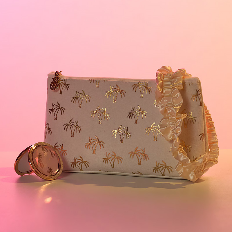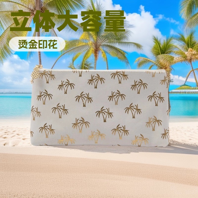 定制跨境新款ins风金色椰树化妆包 出行美妆收纳包旅行便携整理包