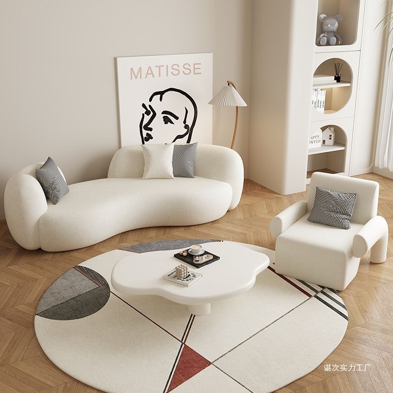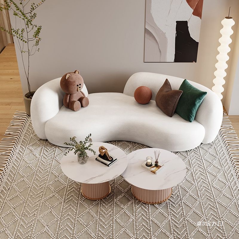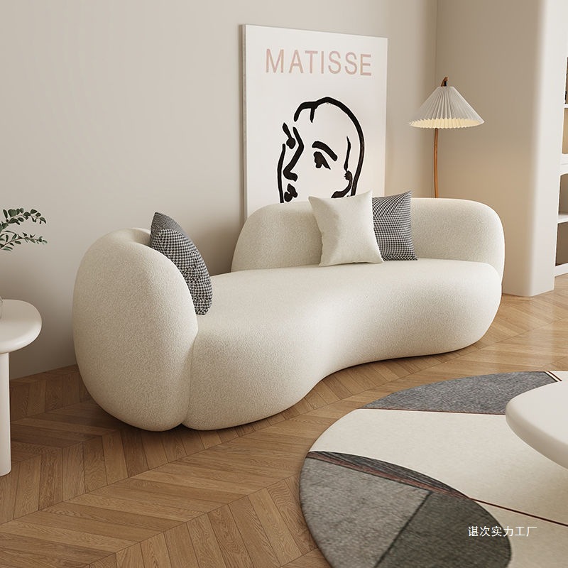 奶油风弧形沙发异形现代简约小户型客厅羊羔绒侘寂风服装店美容院