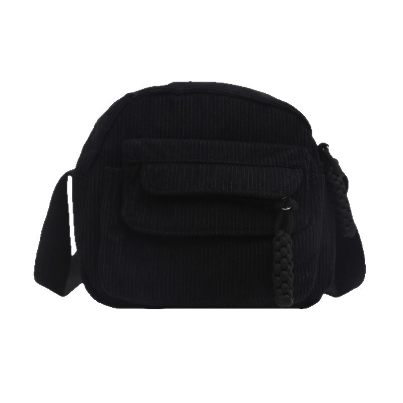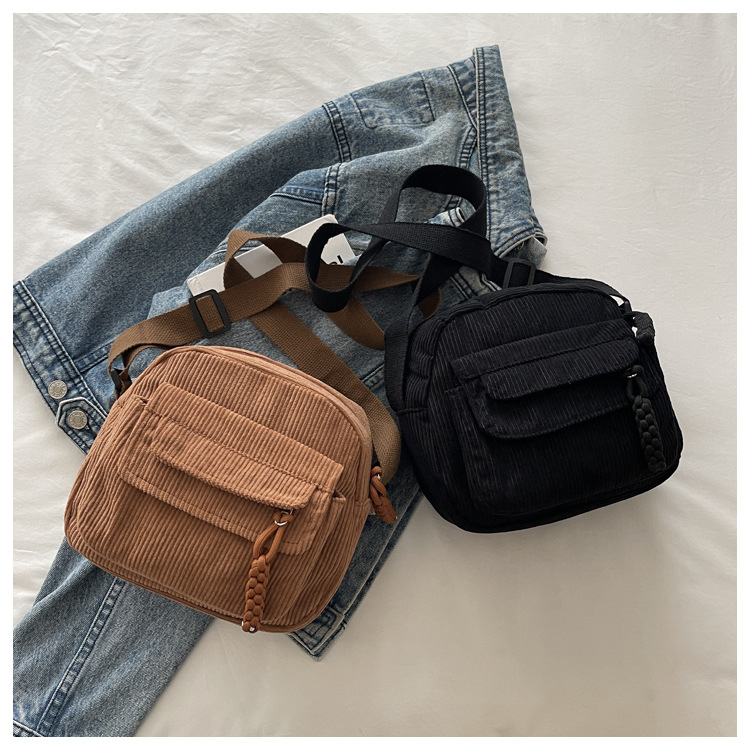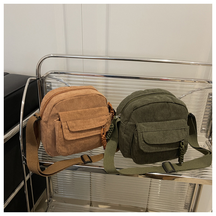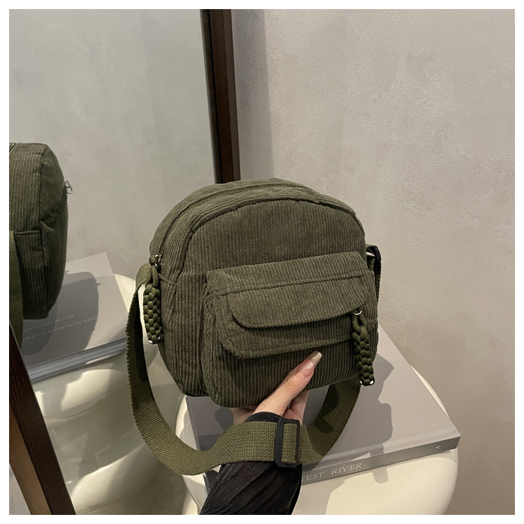 跨境2025灯芯绒新款简约时尚纯色条绒布校园风女生单肩斜挎小包包