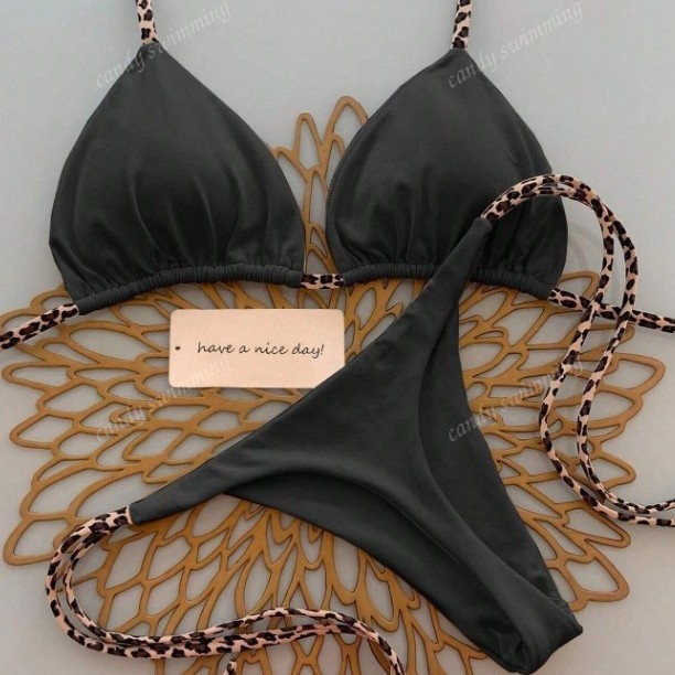欧美新款比基尼泳衣三点式套装挂脖系带性感沙滩分体泳衣女高级感