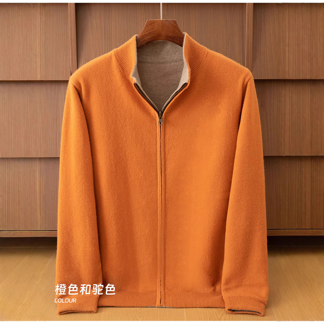 秋冬两面穿100纯山羊绒衫男半高领拉链开衫毛衣宽松针织加厚外套
