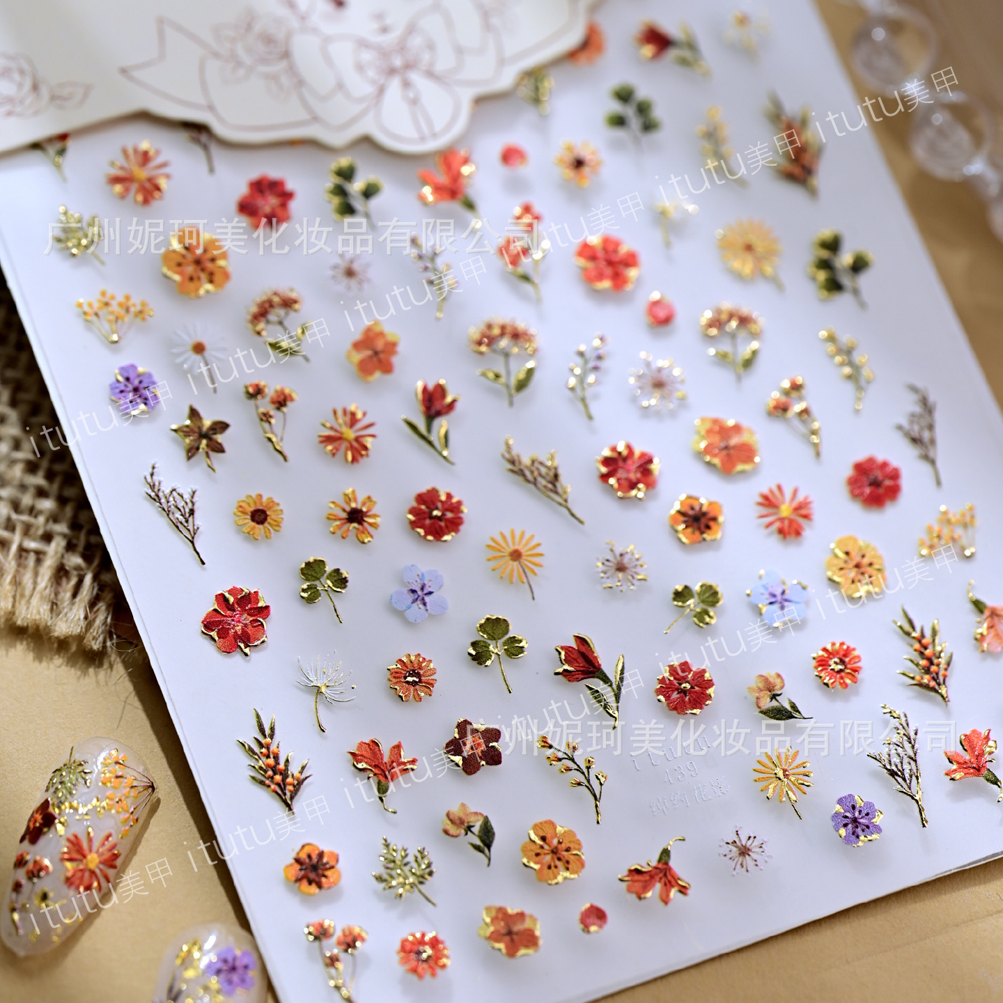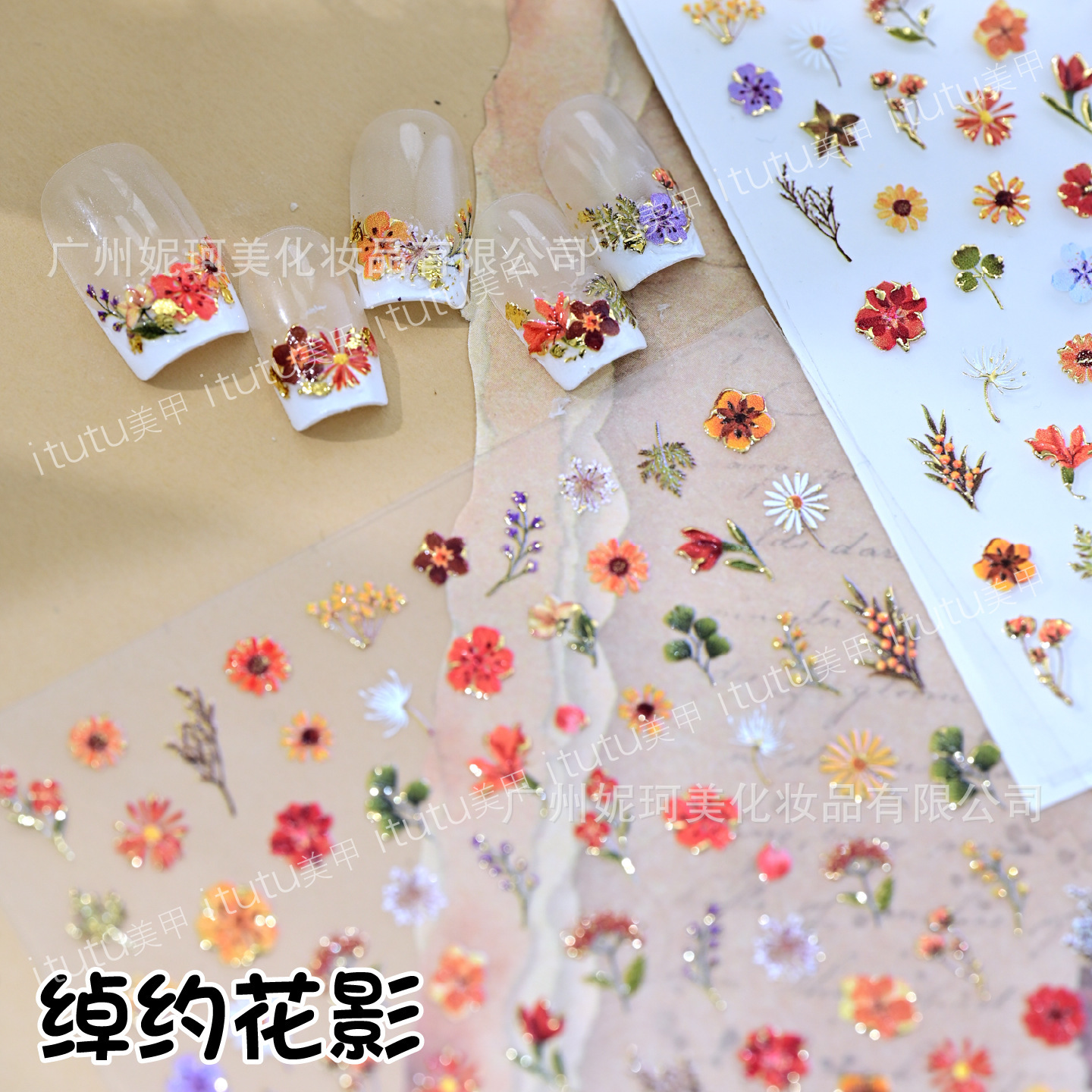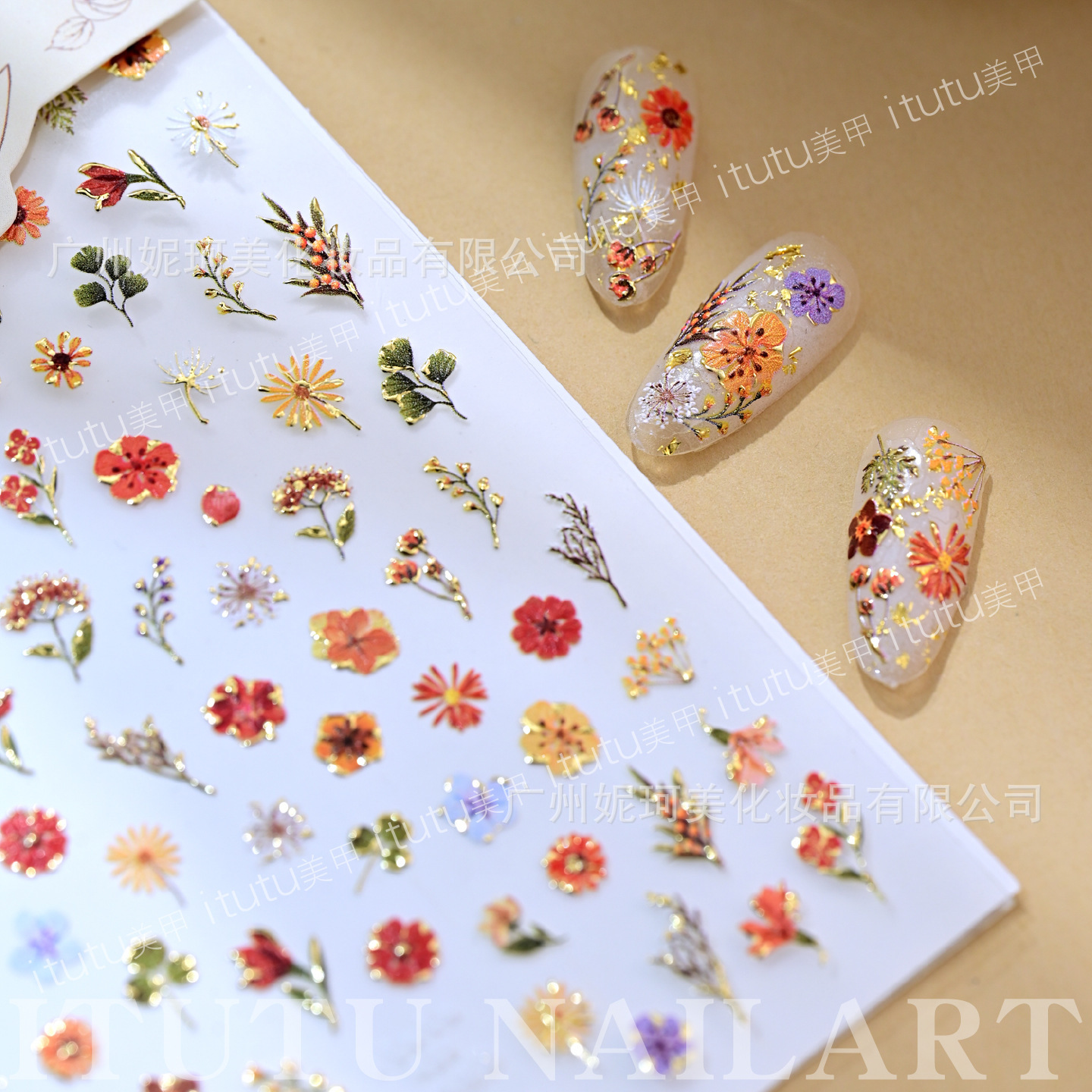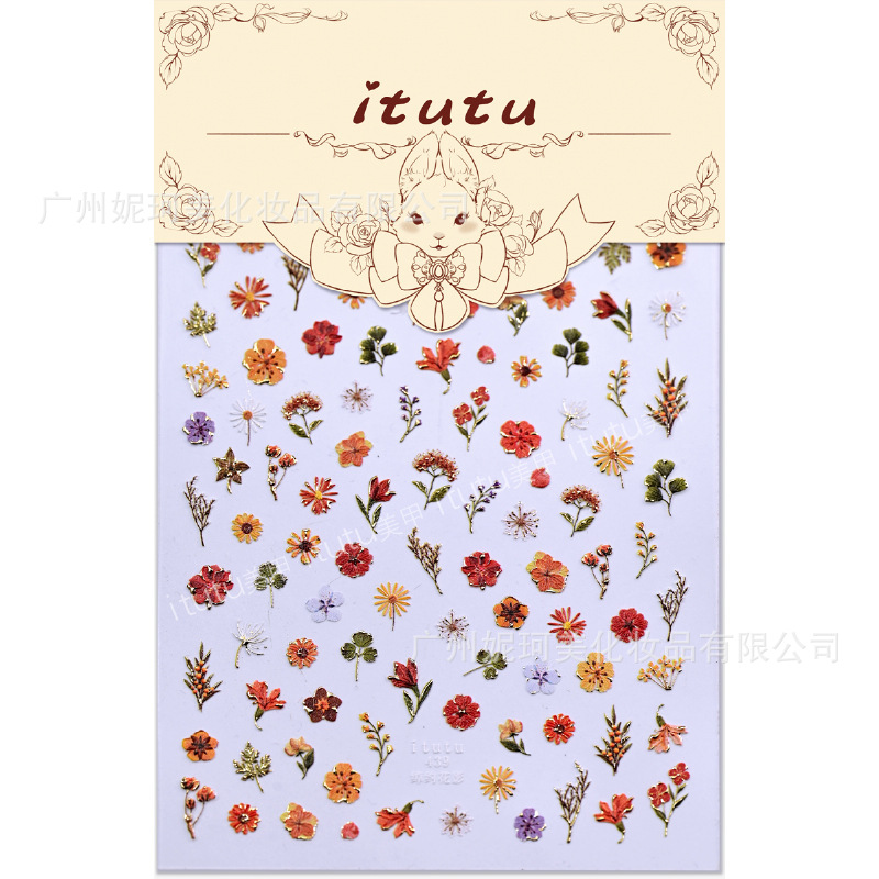 itutu新款美拉德花卉美甲贴纸小雏菊满天星干花小碎花秋天花花贴