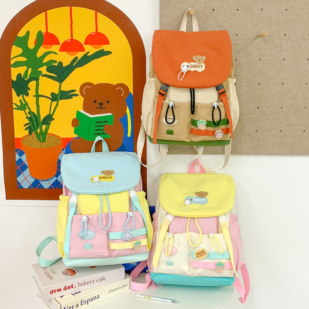 可爱百搭通勤抽绳背包休闲清新甜美双肩包轻便防水大容量学生背包