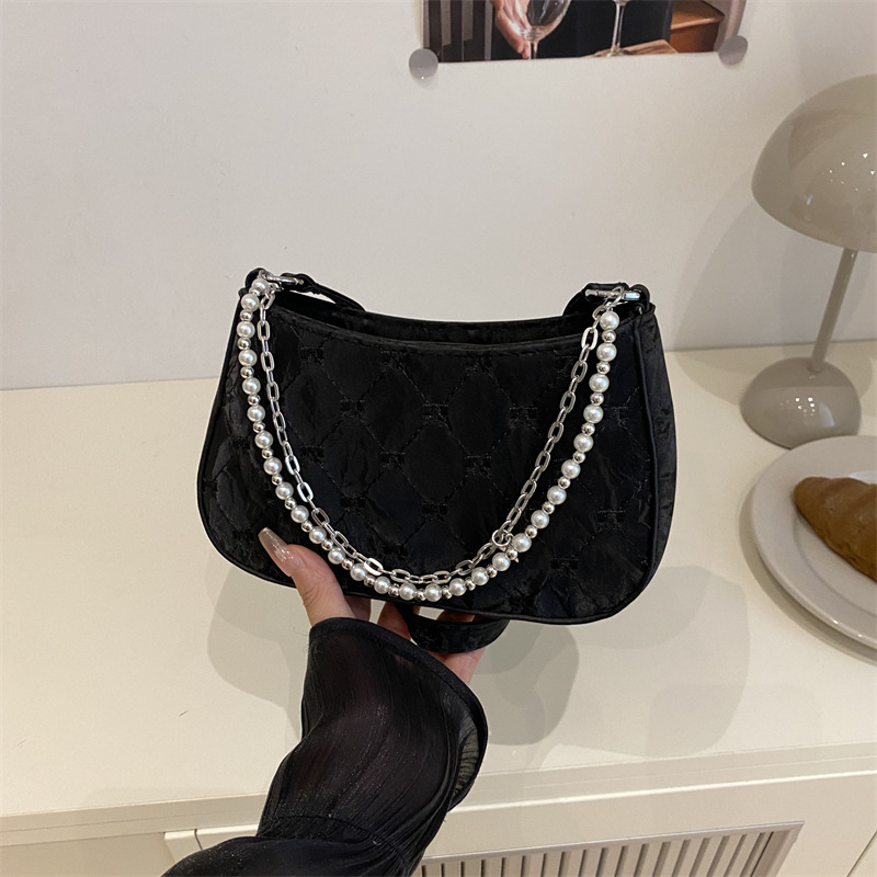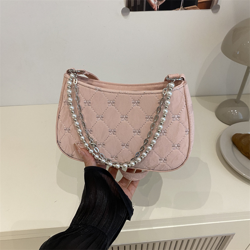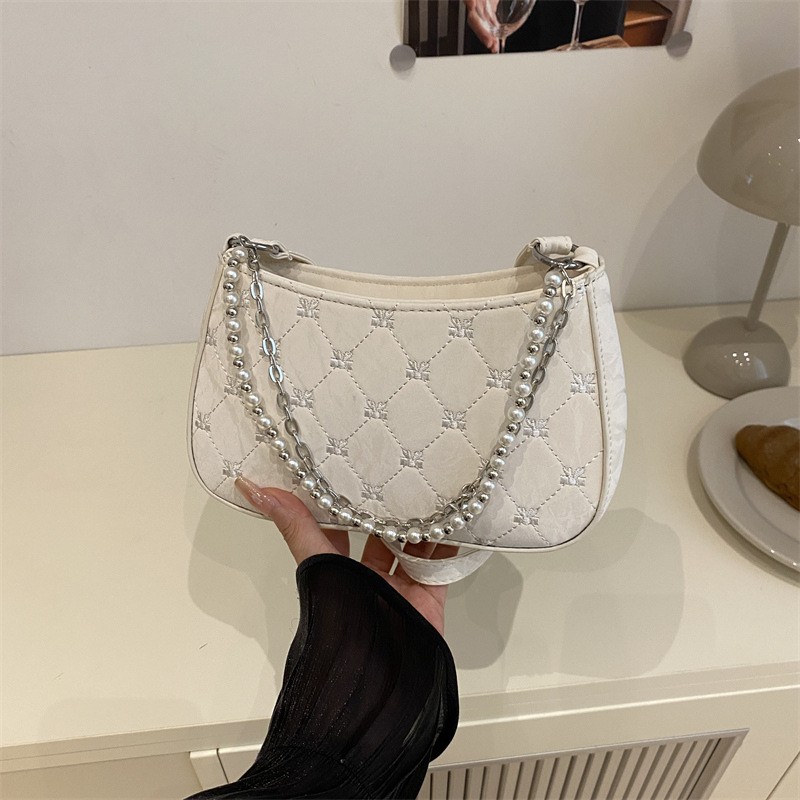 流行蝴蝶法棍包包女2025秋季新款珍珠单肩腋下包链条手挎包休闲