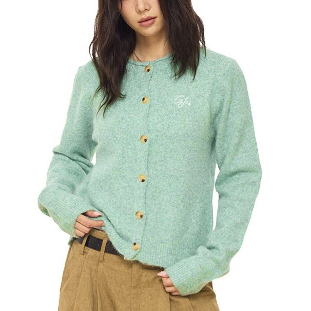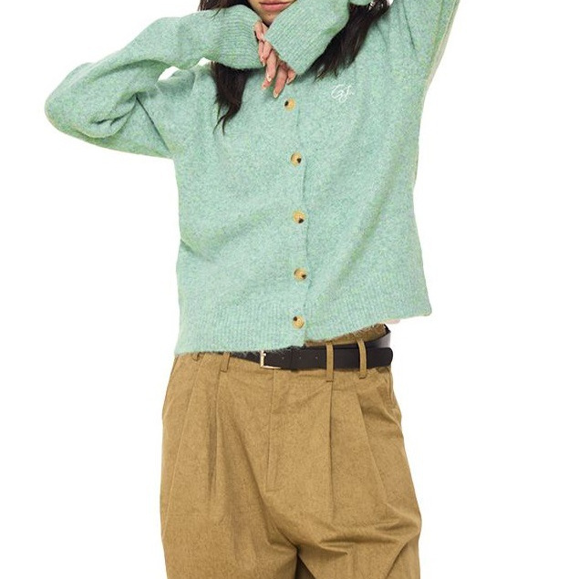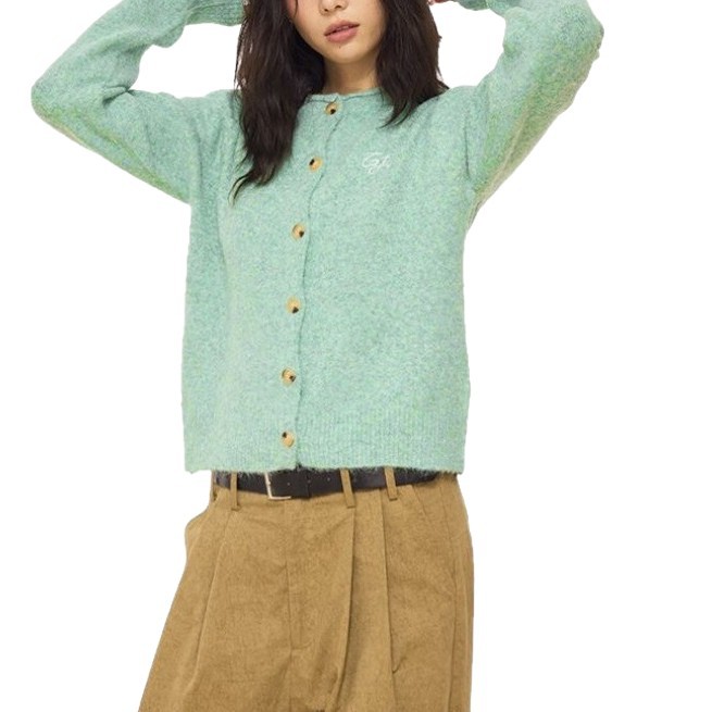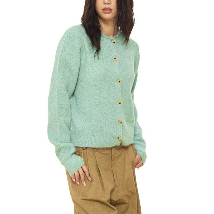 百搭羊毛混纺花纱超正版型基础款亮色针织开衫毛衣女秋