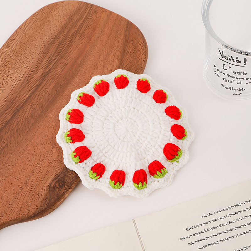 新款热销韩系毛线钩织立体杯垫花朵针织手工饰品立体钩织