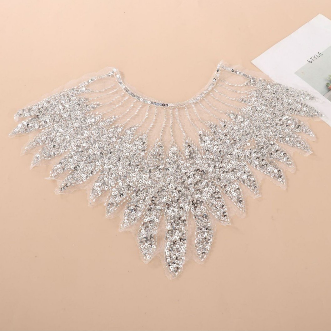 现货爆款刺绣网纱前胸亮片珠绣亮片重工DIY领布贴服装花边辅料