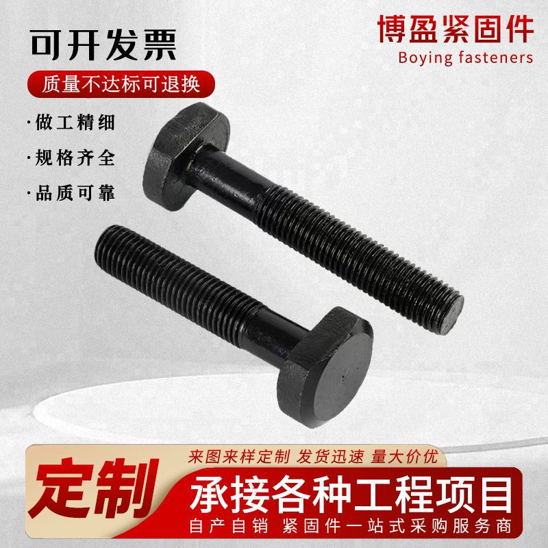 8.8级T型螺栓现货批发压板螺丝发黑碳钢光伏支架半牙螺杆加长螺丝