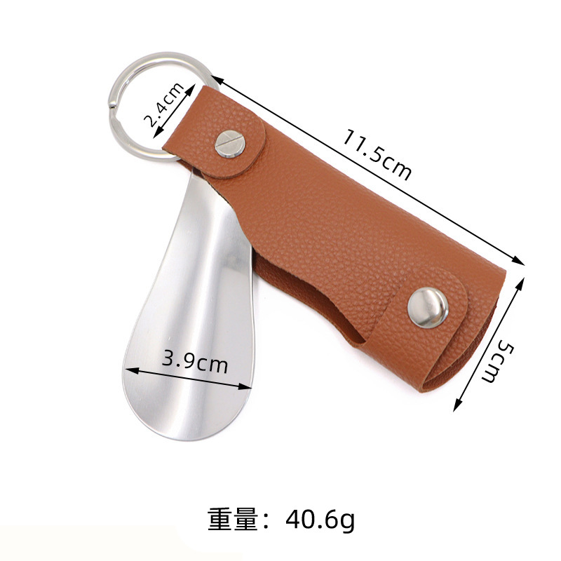 现货鞋拔子小巧便携PU皮革提鞋器鞋拔钥匙扣不锈钢懒人鞋抽鞋拔子