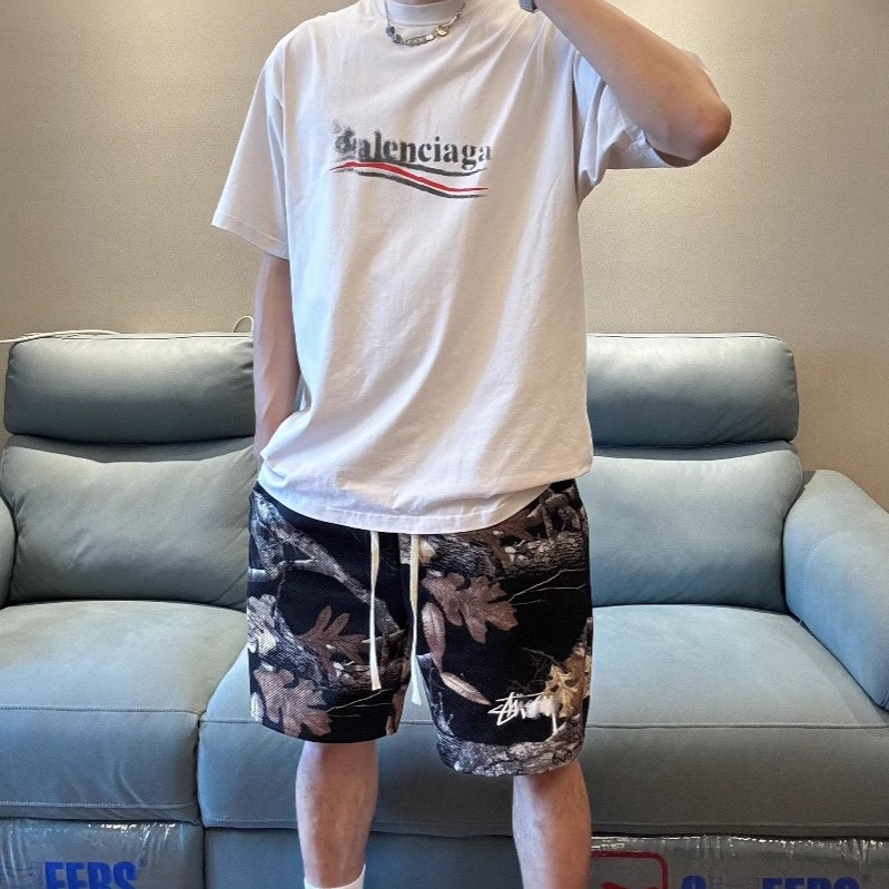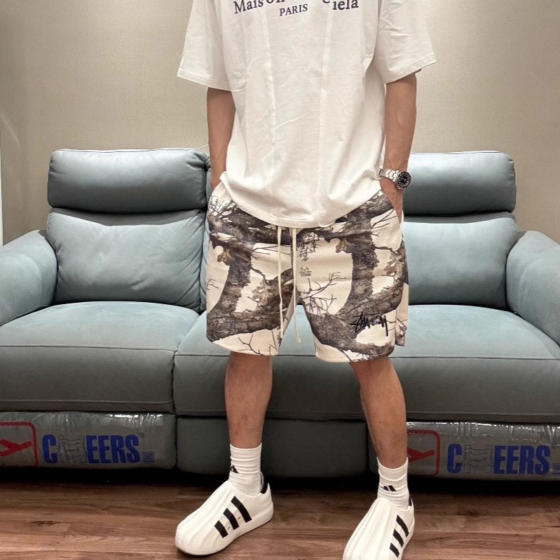 高版本 STU美式复古树枝涂鸦休闲短裤宽松迷彩刺绣标运动篮球裤潮