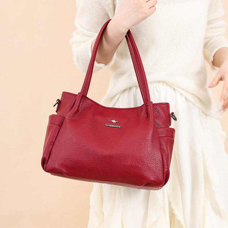 简约女式手提包2025新款中年女士褶皱单肩包潮流时尚百搭斜挎包包