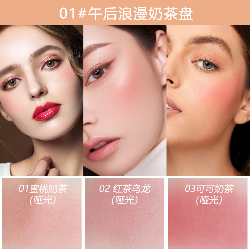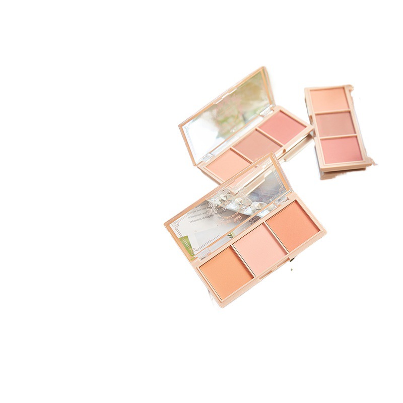 丽洁悠三色腮红盘持久不脱妆高光一体胭脂膏膨胀色腮红眼影修容盘