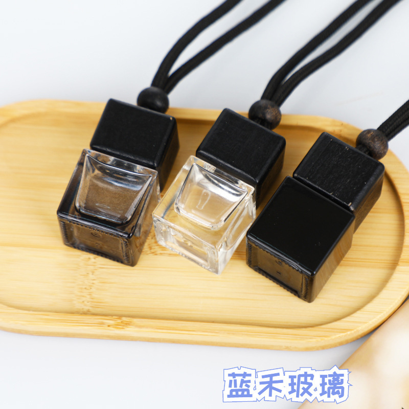 黑色木盖汽车香水瓶车载香薰空瓶汽车挂件香水吊坠分装玻璃精油瓶