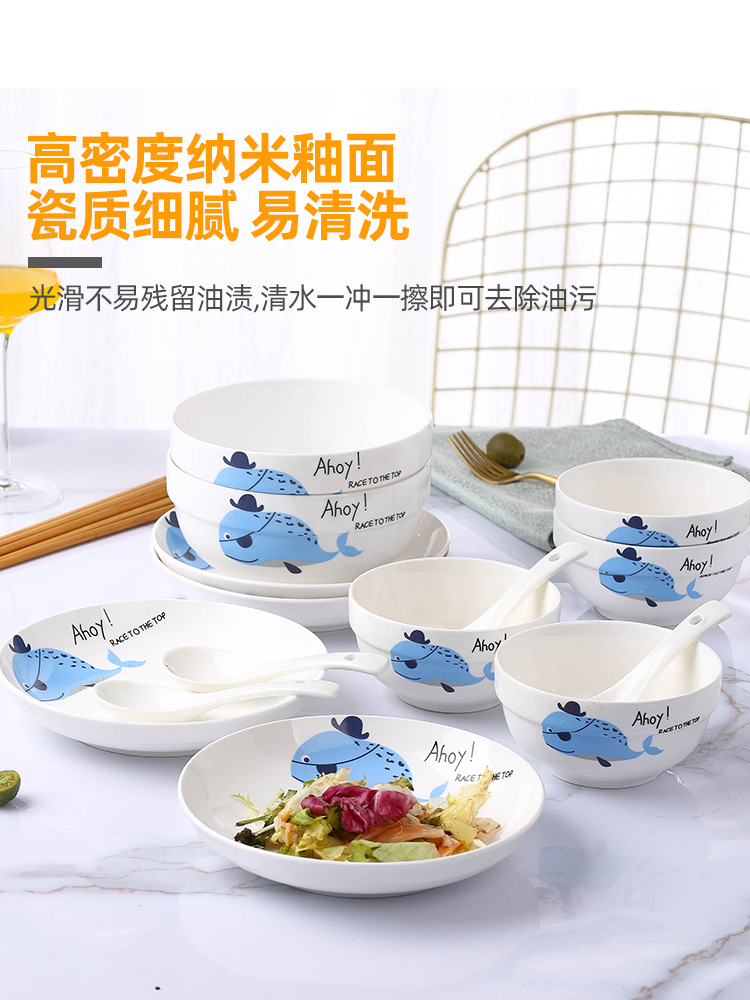 颜色 | 可爱猫 4碗4盘4勺4筷2面碗 | | 颜色 | 小鲸鱼 4碗4盘4勺4筷2面碗 |