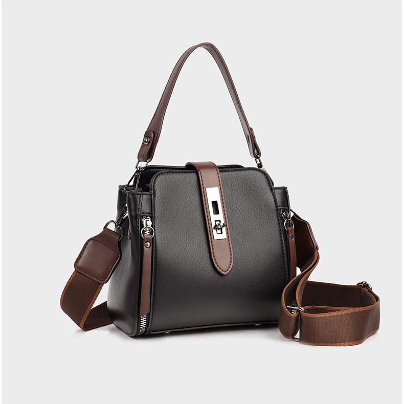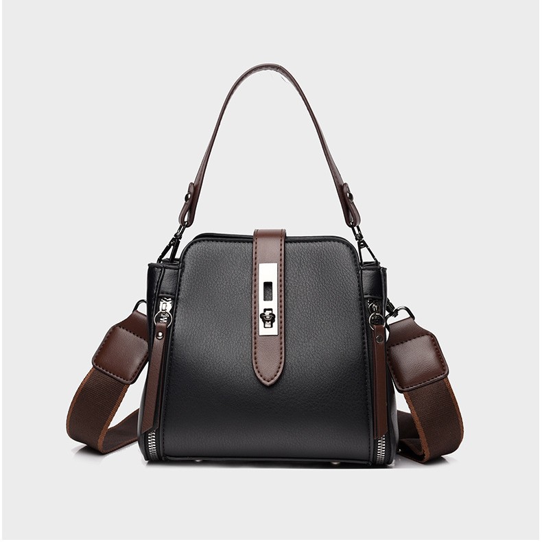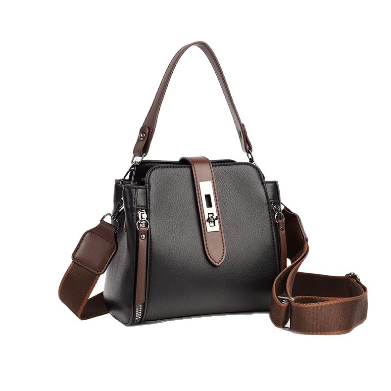 跨境现货包包2025新款时尚水桶妈妈斜挎包简约单肩软皮质感手提包