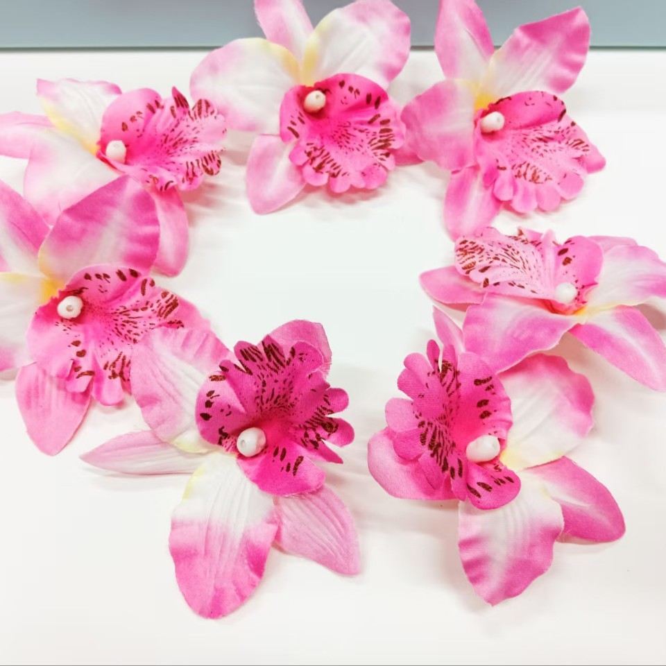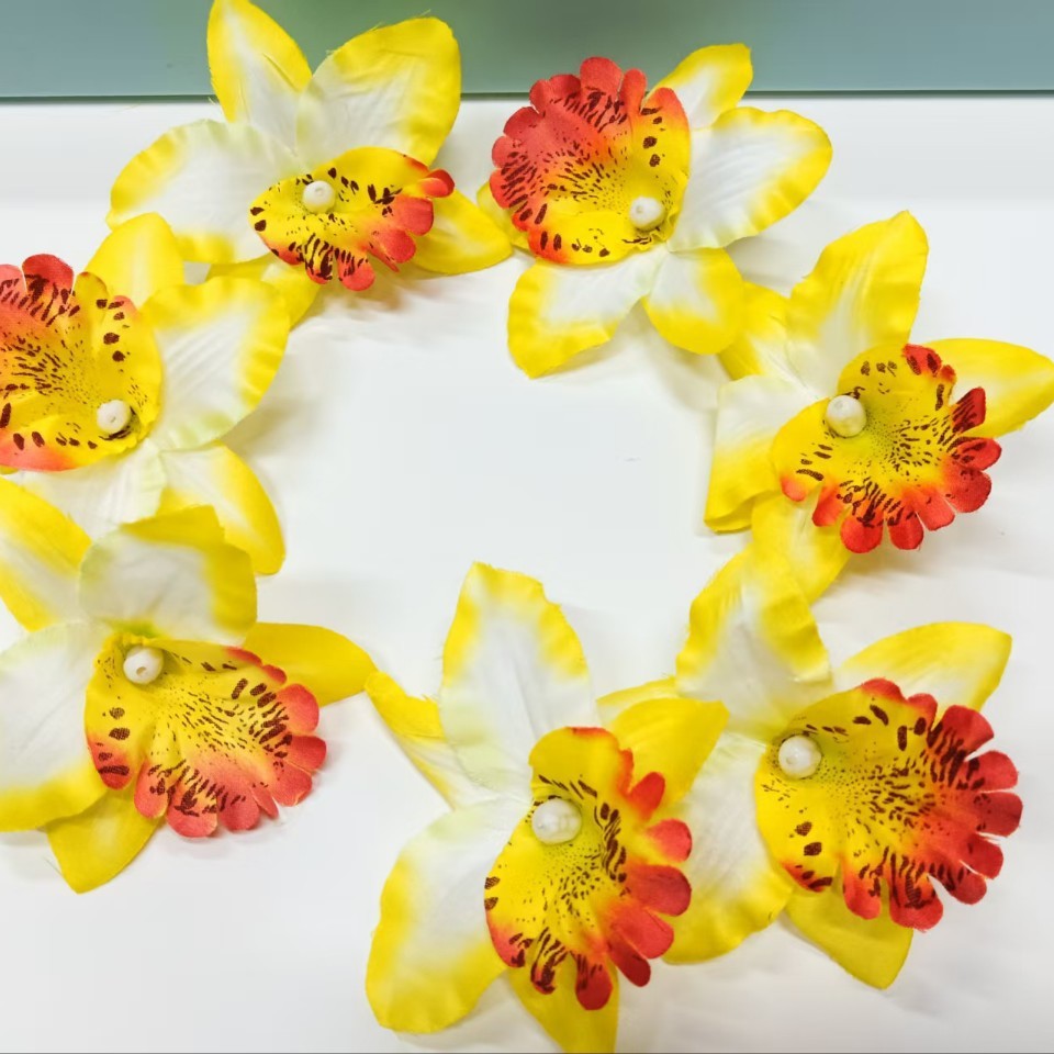 跨境双朵仿真蕙兰花边夹旅游度假发饰海边沙滩头花发夹沙滩风绢花