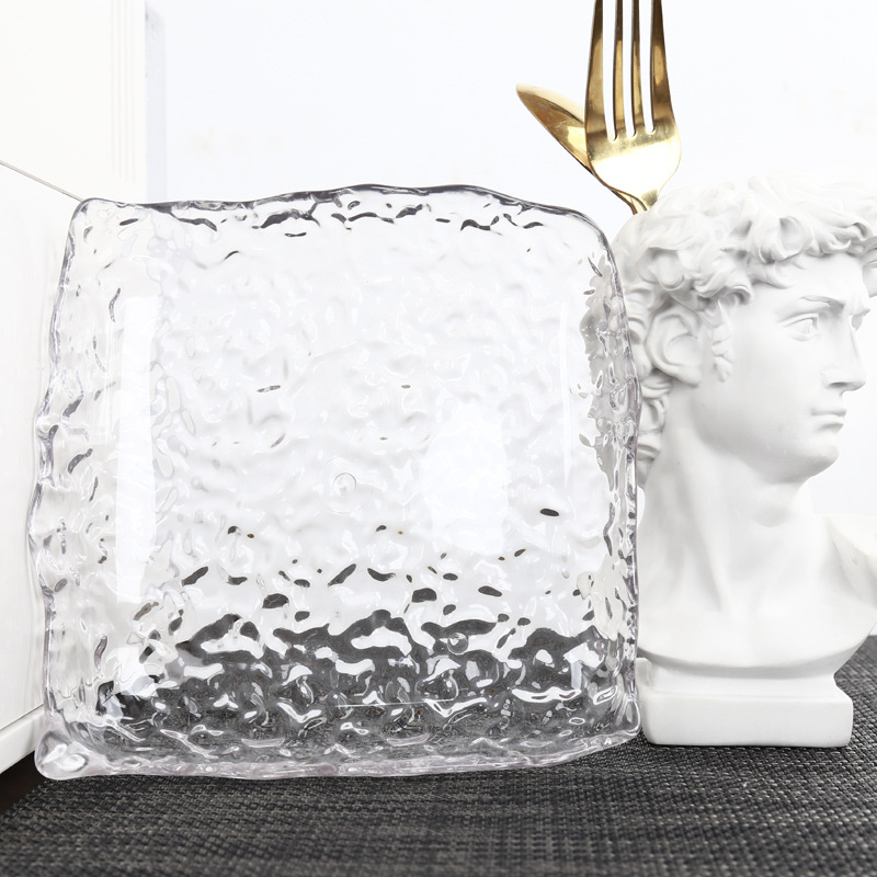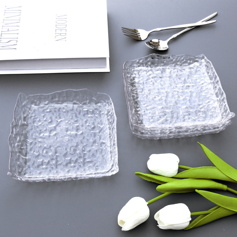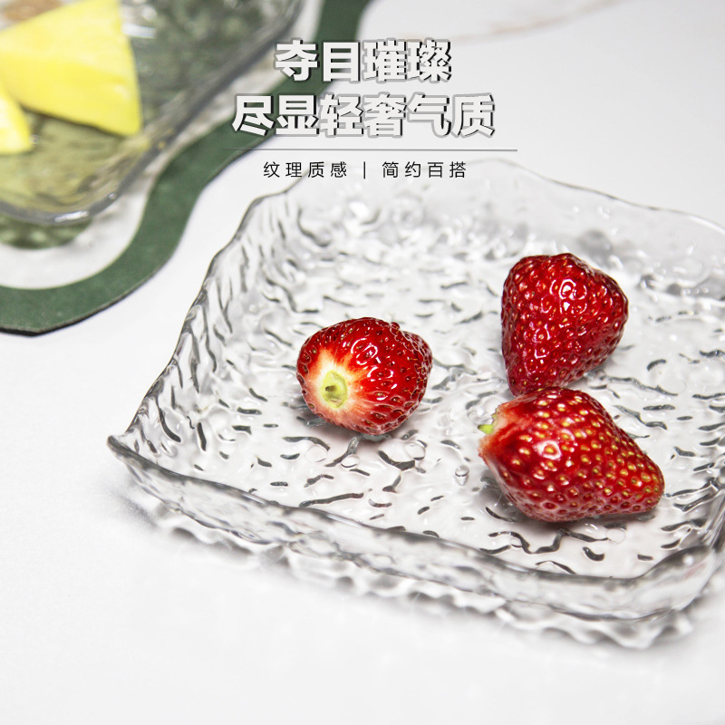 水果盘方形日式冰川纹盘子家用不规则点心碟坚果零食盘透明甜品盘