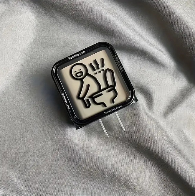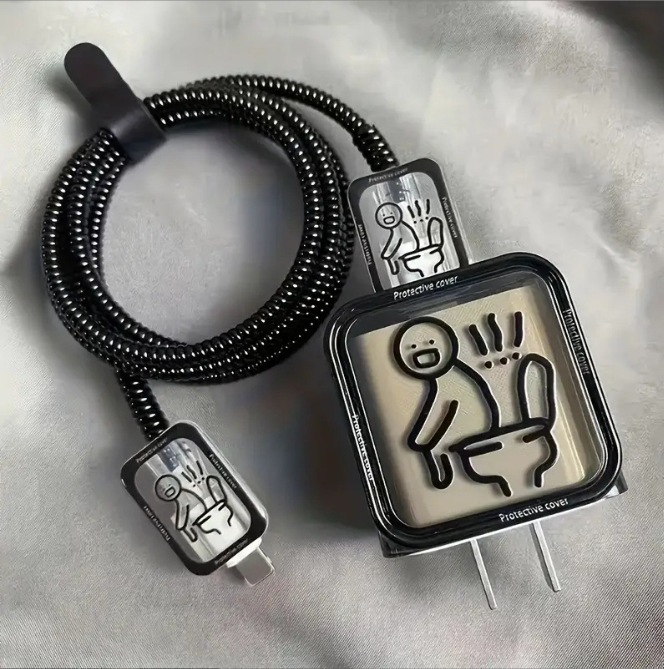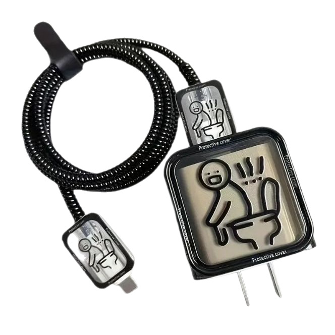 线条人厕所适用苹果13/14/15充电器保护套18w、20w数据线咬线器