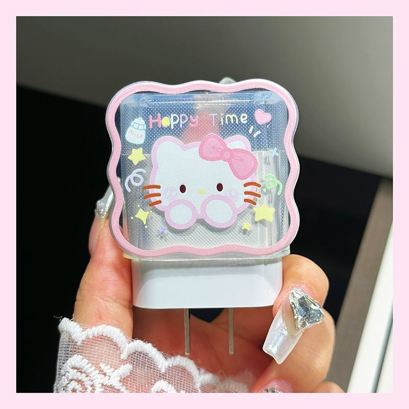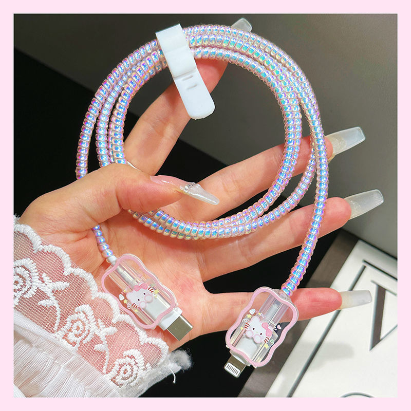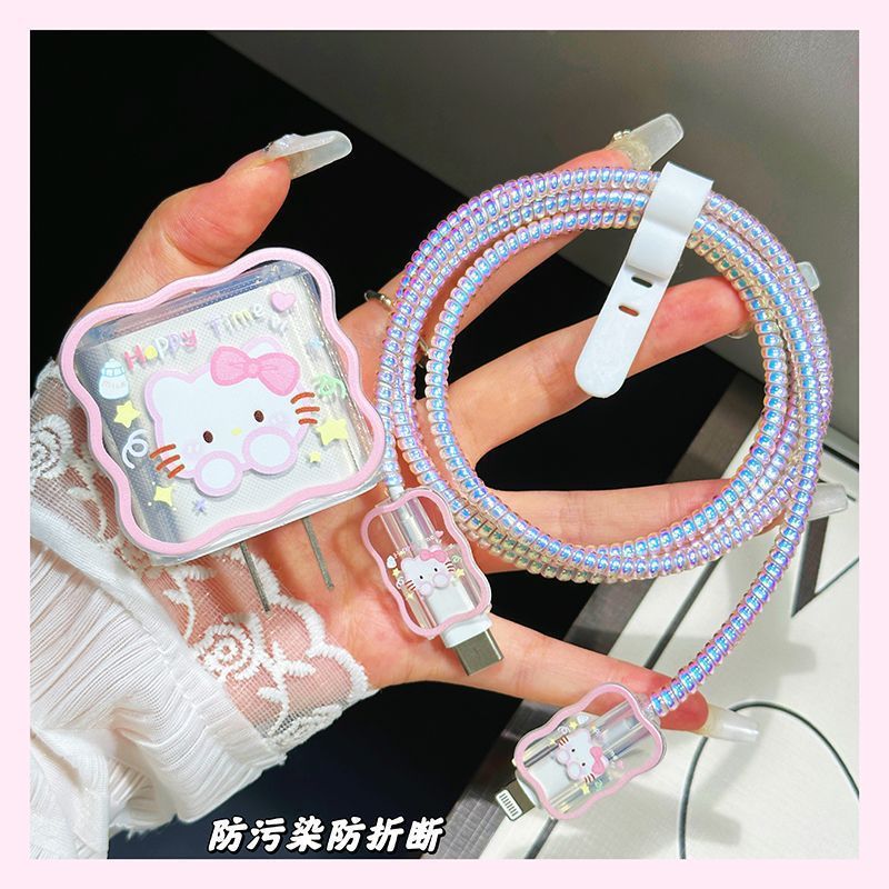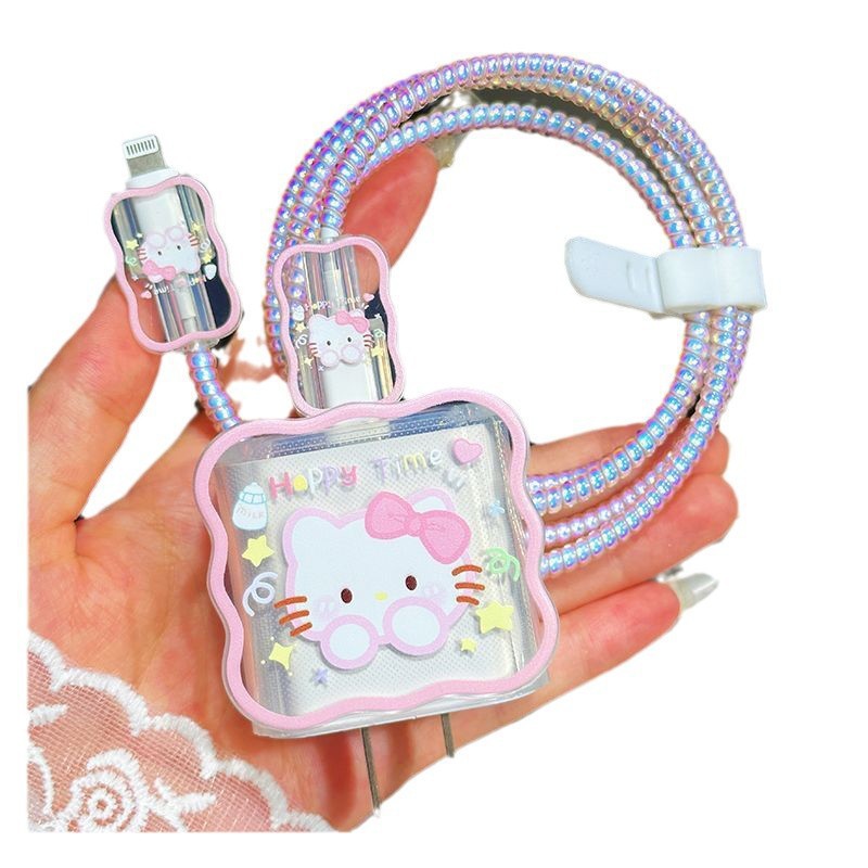 粉色KT猫适用苹果充电头套保护套20w数据线充电器保护套防折波浪
