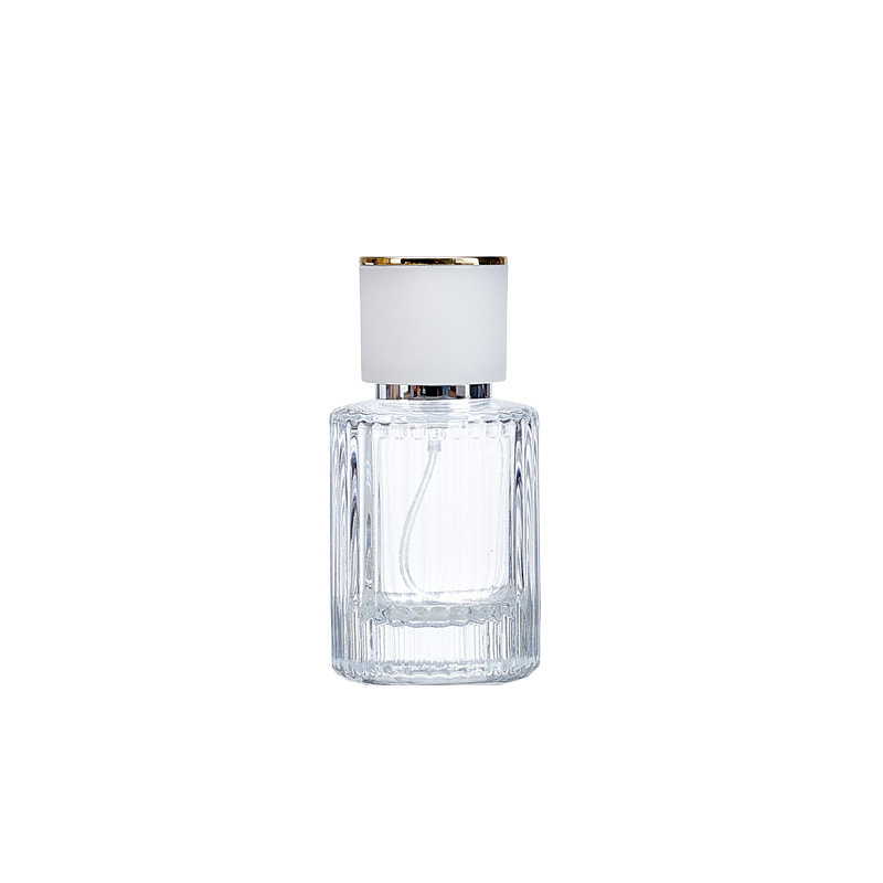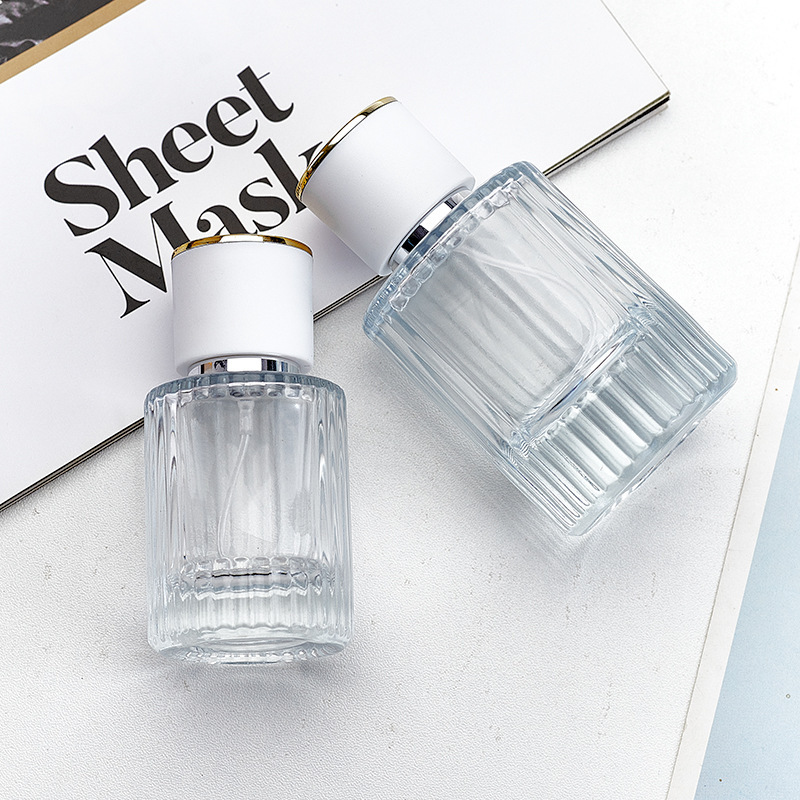 现货圆柱化妆品分装瓶50ml竖条纹化妆水喷雾瓶护肤品香水瓶玻璃瓶
