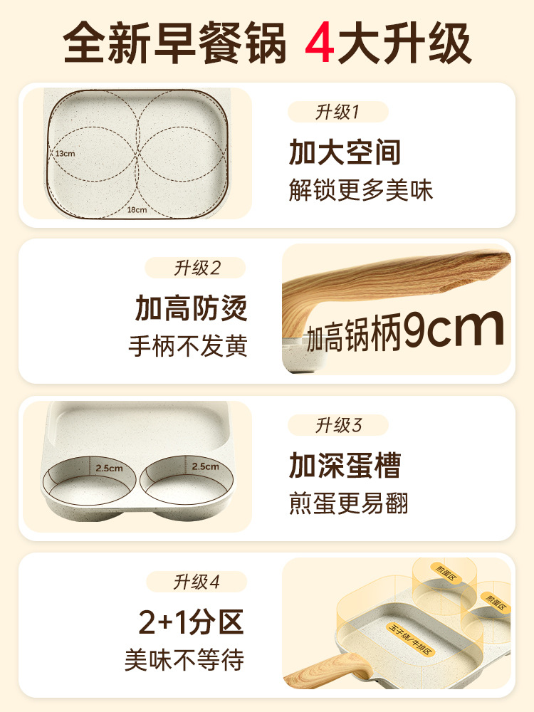 | 颜色 | 『新升级』三合一早餐锅+硅胶两件套【燃气灶专用】 | 颜色 | 『新升级』三合一早餐锅+硅胶两件套【燃气+电磁炉通用】 |