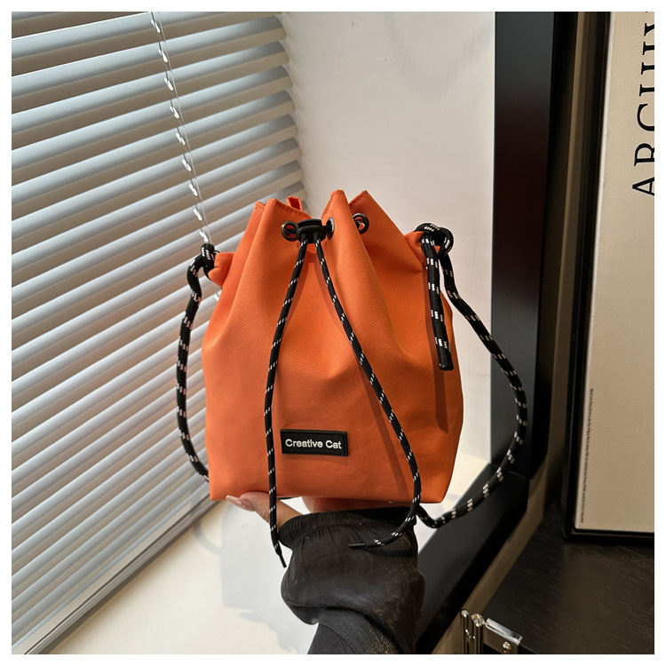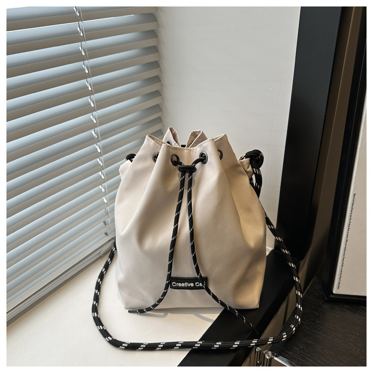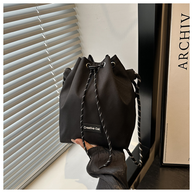 跨境时尚水桶包2025新款大容量小众设计通勤简约抽绳包单肩斜挎包