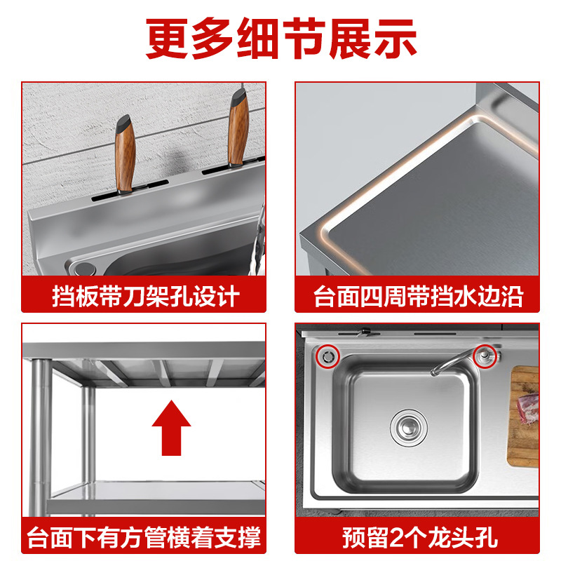 | 外形尺寸 | 加厚150长三层右双槽-带冷热龙头 | 颜色 | 加厚55长大单槽-不带水龙头,加厚55长大单槽-带单冷龙头,加厚80长三层左单槽-不带水龙头,加厚8 |